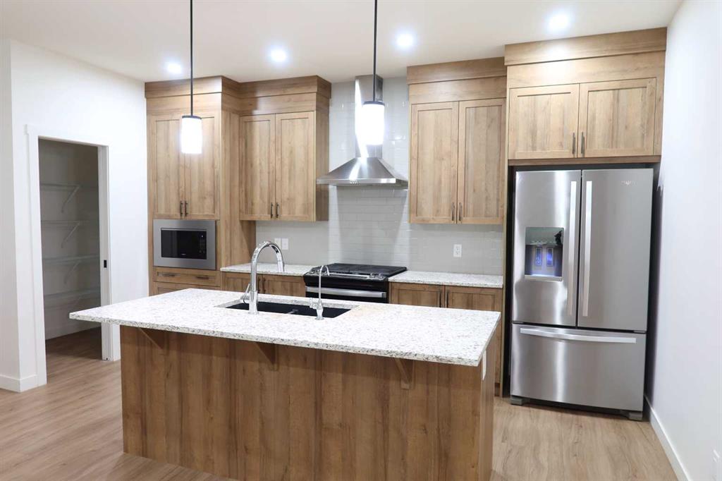 2024 Built | Detached Single-Family | Front Double Garage | 4 Bedrooms (Main Floor Bed + Full Bath) | 2-Bed Illegal Suite w/ Side Entrance — Welcome to this upgraded detached home in the growing community of Homestead NE, offering back-alley access, modern finishes, and multi-generational living potential. The open-concept main floor features an open-to-above foyer, upgraded kitchen, and a full bedroom with a full bathroom, ideal for guests or extended family. Upstairs offers a spacious bonus room, walk-in laundry room, walk-in closet in the primary bedroom, plus additional well-sized bedrooms for the family. The basement includes a functional 2-bedroom illegal suite with a private side entrance, offering flexibility for extended family living or extra space. A well-designed home in a rapidly growing NE community—book your showing today.