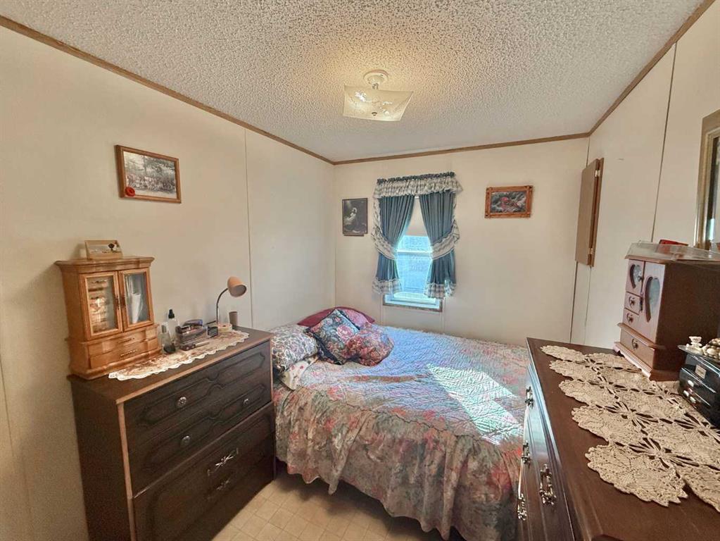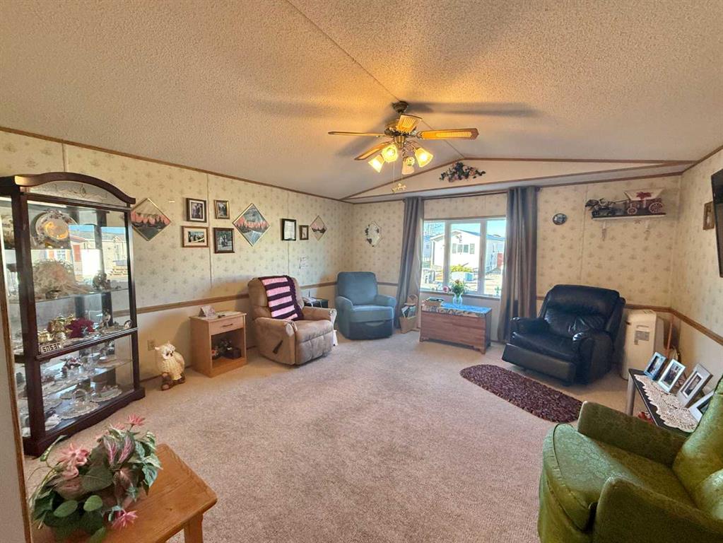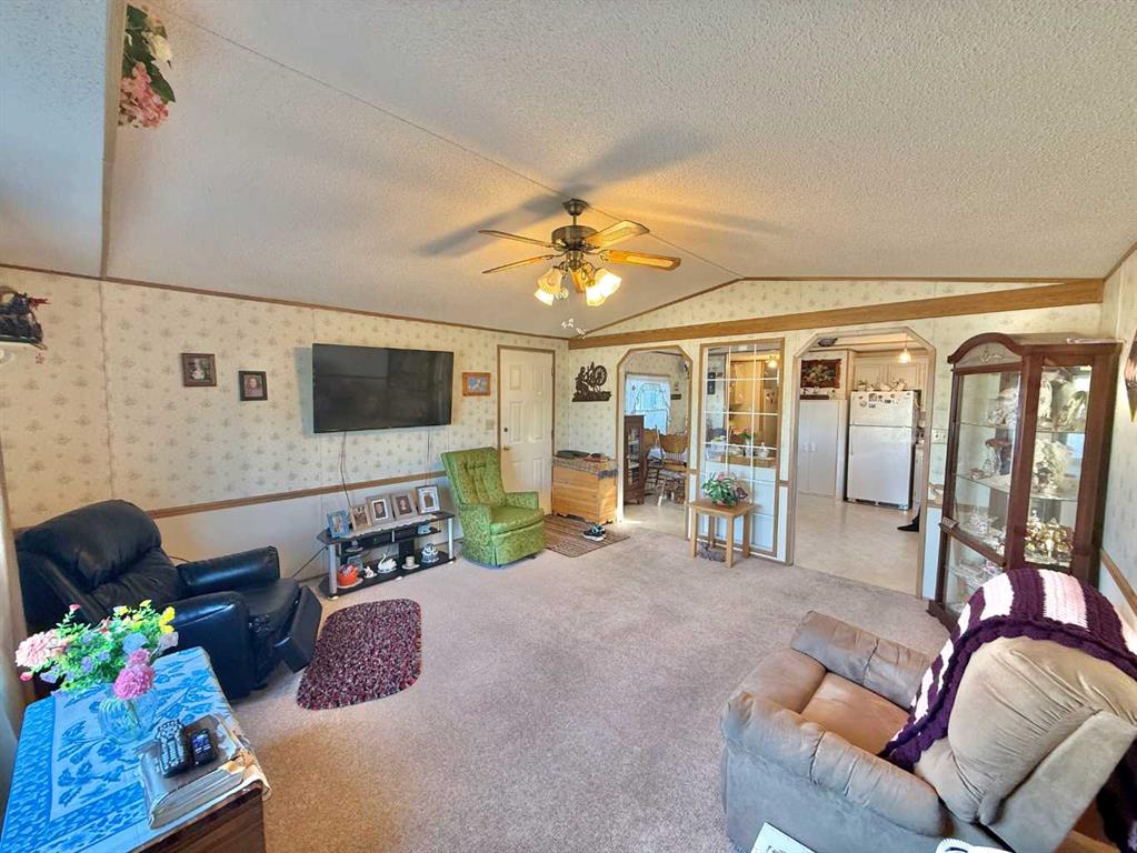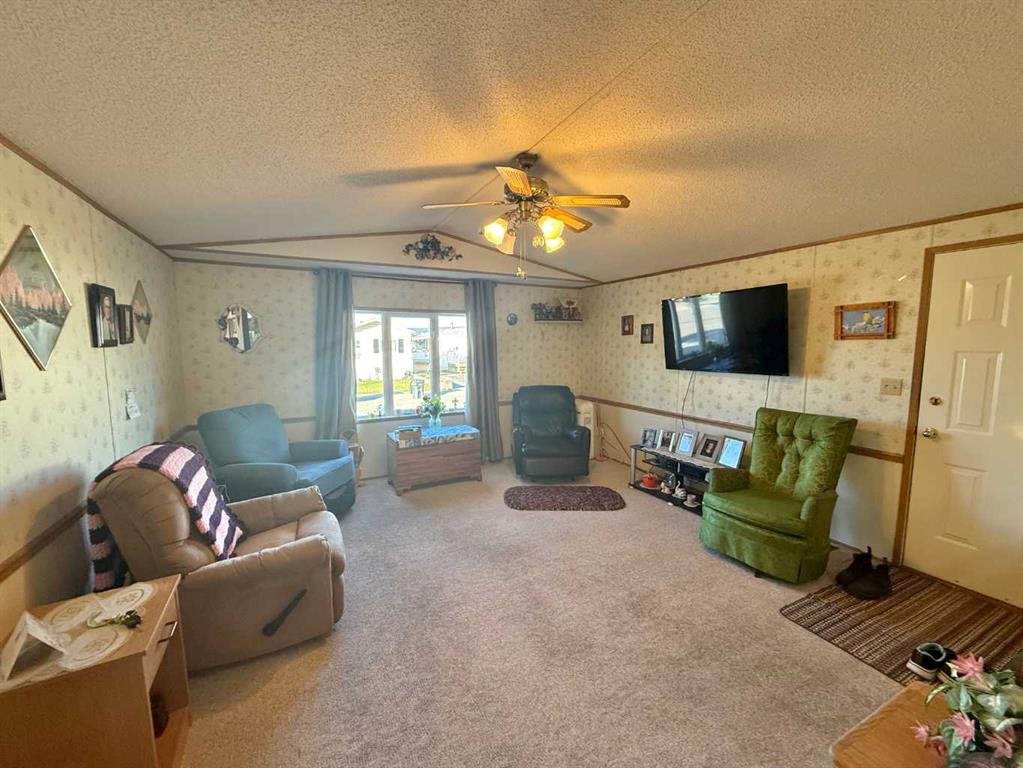 Older, well kept single wide manufactured home on its own lot in the family friendly East Hardisty district. This home has served as a lovely family home for a generation. This home has been gently lived in for many years and could comfortably be lived in, in its current state. However it would greatly appreciate with renovation. The home backs onto green space and has a large covered deck space to protect you from the elements plus 2 large sheds in the back. It also features 3 beds and 1 full 4PC bathroom. There is a nice open kitchen and dining area. Many of the windows have been updated to vinyl. The furnace also has been updated. This home has tons of potential and is priced very competitively to account for any potential renovations that might be needed. The seller has provided an inspection report for any interested potential buyers