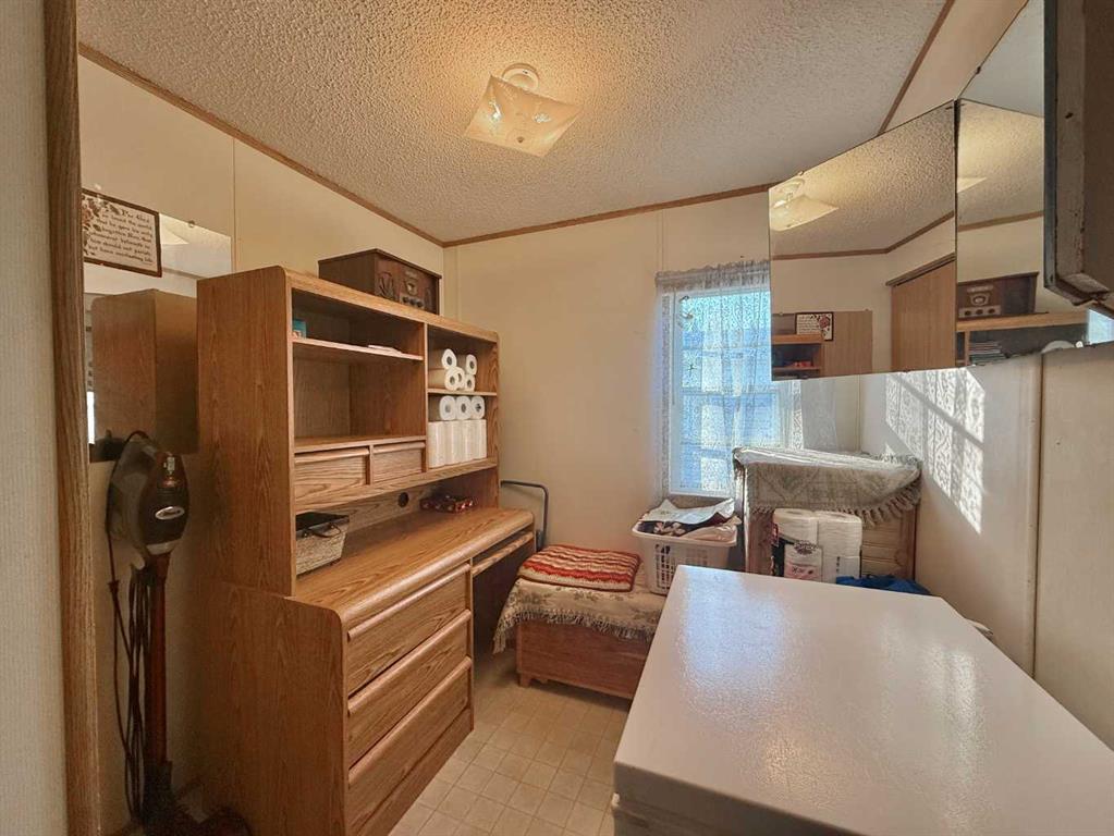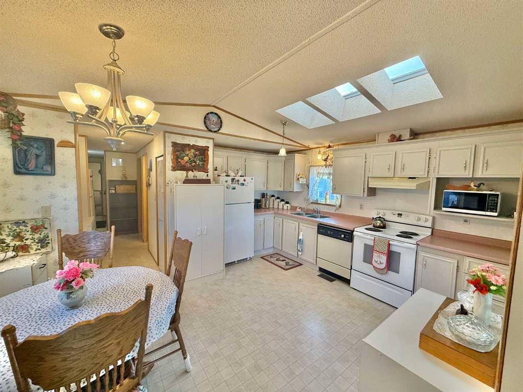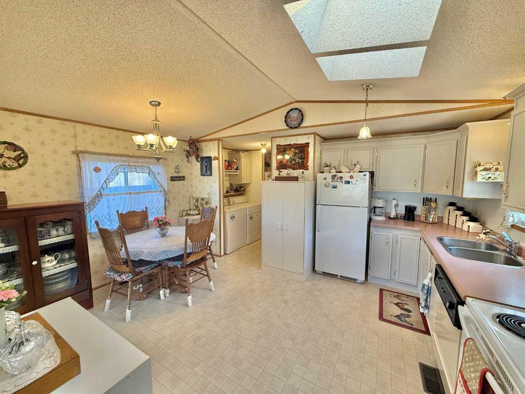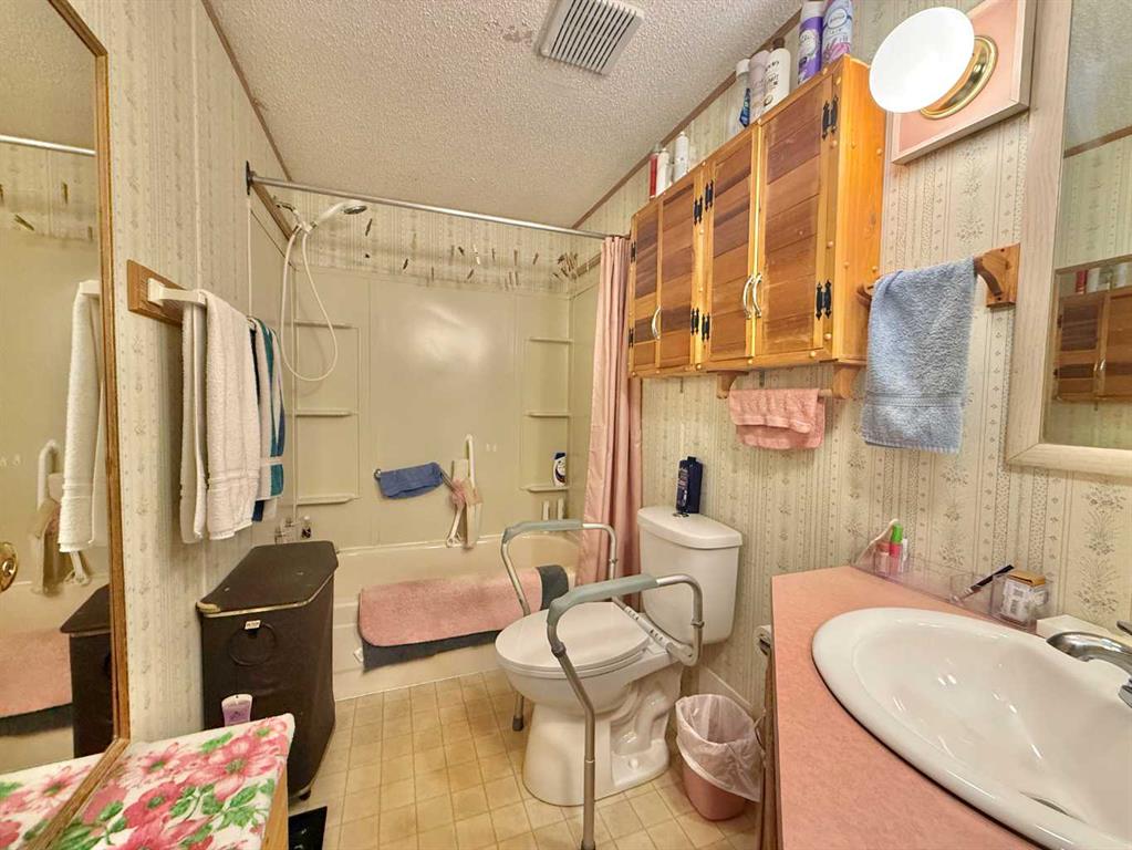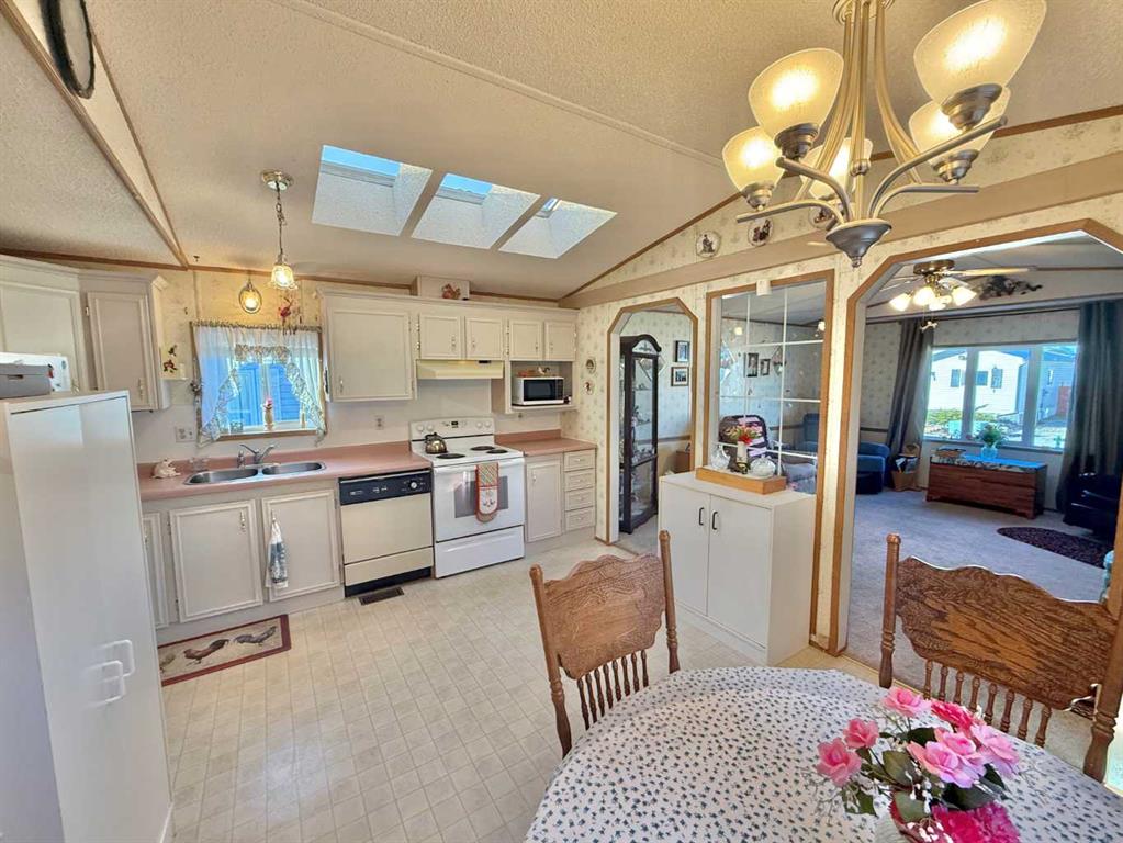 Older, well kept single wide manufactured home on its own lot in the family friendly East Hardisty district. This home has served as a lovely family home for a generation. This home has been gently lived in for many years and could comfortably be lived in, in its current state. However it would greatly appreciate with renovation. The home backs onto green space and has a large covered deck space to protect you from the elements plus 2 large sheds in the back. It also features 3 beds and 1 full 4PC bathroom. There is a nice open kitchen and dining area. Many of the windows have been updated to vinyl. The furnace also has been updated. This home has tons of potential and is priced very competitively to account for any potential renovations that might be needed. The seller has provided an inspection report for any interested potential buyers