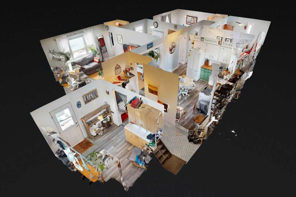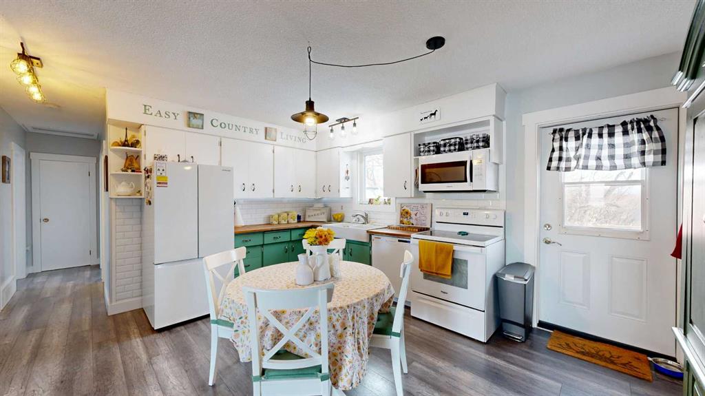 This wonderful home sits on 2.97 acres, just half a mile from Gadsby, and only 22 miles from Stettler. This property offers space, serenity, and the kind of country lifestyle families, hobby farmers, and rural dreamers will love. Inside, the home is fresh and bright, with a warm and inviting layout. The kitchen is filled with natural light and features an apron sink that suits the home’s country character perfectly. The dining area flows easily into the spacious living room, creating an ideal space for everyday living and gathering. Down the hall, the primary bedroom includes its own ensuite, and there are two additional bedrooms for children, guests, or a home office. The main bathroom features a tub/shower combination and charming country-inspired wainscoting. A hallway closet adds convenient storage. The main floor is completed by a large entrance equipped with cabinets, counterspace, and plenty of room for an extra fridge or freezer—perfect for acreage life. The basement offers exceptional flexibility for every family member. There is a large family room, a comfortable bedroom, and a utility/storage room with ample space for seasonal items. The laundry area at the bottom of the stairs is complete with front-load washer and dryer and a rustic wood accent wall. Upgrades throughout the home include newer vinyl windows, new furnace in 2020, and metal roof done in 2020. The front entrance has a patio at the base of the stairs, ideal for your deck chairs or planters, and the flower bed enhances the welcoming feel. Out the back door, enjoy a west-facing deck overlooking your backyard and the farmland beyond. The gazebo and dedicated garden space add even more charm to this inviting outdoor area. Mature trees around the acreage and throughout the yard, offering privacy and shelter from the wind. The acreage is perimeter fenced and cross-fenced, providing enclosures for animals. This property is on municipal water. The garage has an attached lean-to creating a workspace to the side. Two additional outbuildings complete the property, making it practical for projects, storage, or small-scale farming needs. The barn measures 20’x10’ and the workshop measures 32’x21’. This is a charming, well-kept acreage that blends comfort, country style, and functional space—perfect for families and anyone eager to enjoy the peaceful rural lifestyle.