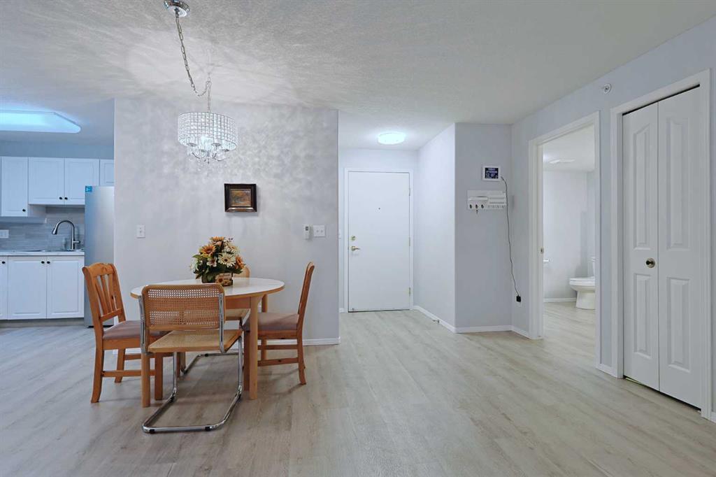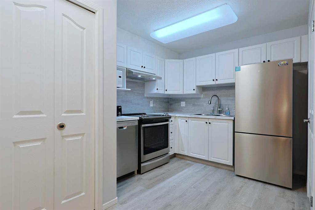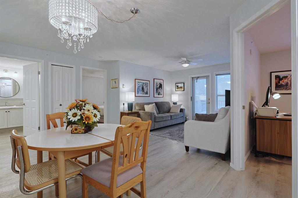 This is your chance to make your home in the exclusive LEGACY ESTATES condo project…this highly desirable 55+ complex offering adult maintenance-free living in the sought-after West Hills community of Patterson. This wonderful top floor 2 bedroom home has a fantastic open concept floorplan with upgraded vinyl plank floors, great-sized kitchen with stainless steel appliances, titled underground parking stall & top-notch residents’ amenities including fitness room, library & huge lounge/dining room for social gatherings. You’ll love the warm & inviting feel of this tastefully-appointed condo, with its cozy living room with garden doors to the Northeast-facing balcony, spacious dining room area & bright kitchen with walk-in pantry, white cabinets & the appliances include a Hisense fridge & new Whirlpool dishwasher. For added privacy, the bedrooms are situated on opposite sides of the condo & both feature great closet space. The large full bathroom has an oversized walk-in shower & loads of cabinet space. Convenient insuite laundry with space-saving Whirlpool washer/dryer. There\'s also a portable window air conditioning unit for to keep you cool on those hot summer days & nights. Residents of LEGACY ESTATES have a wide range of amenities to enjoy…games room, fitness room, common laundry, library, hair salon, guest suite, visitor parking & the sensational dining/social room complete with fireplace. Monthly condo fees include heat, water-sewer & electricity. Tucked away at the end of this no-thru road surrounded by winding trails, across from an off-leash park & walking distance to neighbourhood shopping. Quick & easy access to Old Banff Coach Road means a quick commute to Westside Rec Centre & LRT, major retail centers & downtown.