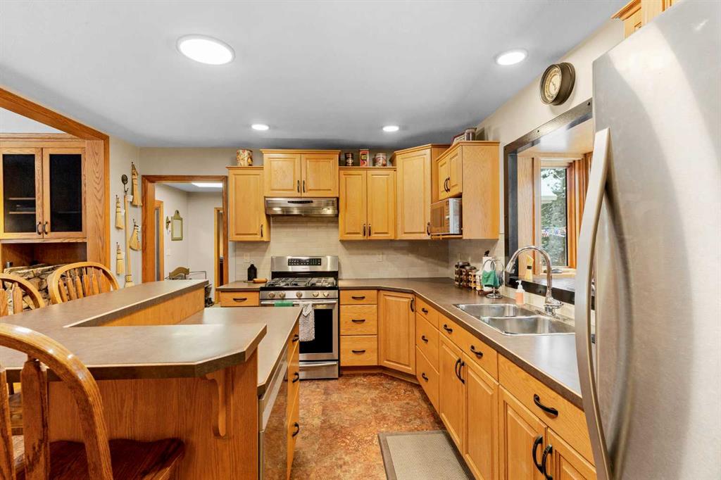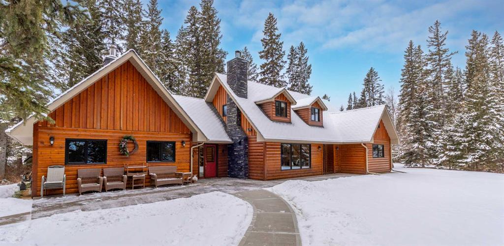 Welcome to your very own PRIVATE RETREAT! Offering 2,400+ Sq Ft of developed space in this 1.5 story home with 4 bedrooms & 3 Bathrooms! This inviting, lodge-style home is tucked among towering evergreens and wrapped in picture perfect tranquility. The exterior showcases warm half log siding, a striking stone chimney, and charming dormer windows, all framed by pristine forest views. There is an expansive rear concrete patio and this property is LANDSCAPED and WELL MAINTAINED. The main floor consists of beautiful HARDWOOD FLOORS and a wing design with the primary bedrooms and 4-piece ENSUITE on one side and another bedroom, 3-piece bathroom and family/rec room on the opposite side. Connecting the two is a spacious kitchen with center ISLAND, SS appliances and plenty of drawers, cabinetry and counter space. The kitchen is open to the cozy dining room and comfortable living space. Features: MAIN FLOOR LAUNDRY, plenty of STORAGE spaces and 3 FIREPLACES (2 wood burning & 1 gas in the primary ensuite). Upstairs houses 2 generously sized bedrooms, a storage/flex room and a 4-piece bathroom. The crawl space houses the utility components and offers even more storage. Outside you will find immaculately maintained landscape and a dedicated firepit area & GARDEN! The DETACHED GARAGE/SHOP was added onto and provides ample storage, parking, workshop space and is complete with 2-piece bathroom for added convenience. The STUDIO STYLE SUITE (not legalized but county knows suite is there) has an everything you need including a 3-piece bathroom. Great for guests accommodation! Great location just off pavement and just 15 minutes to Glennifer Lake and under 20 minutes to Bowden! Wheelchair accessible.