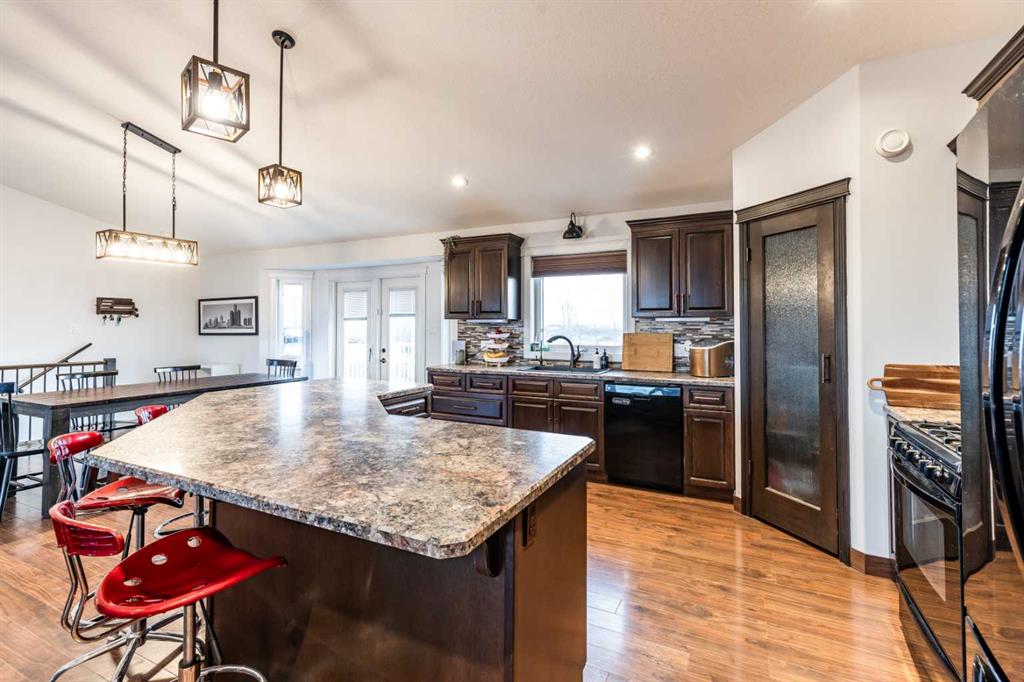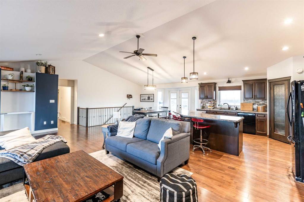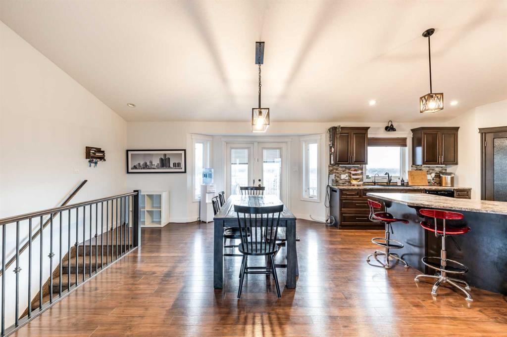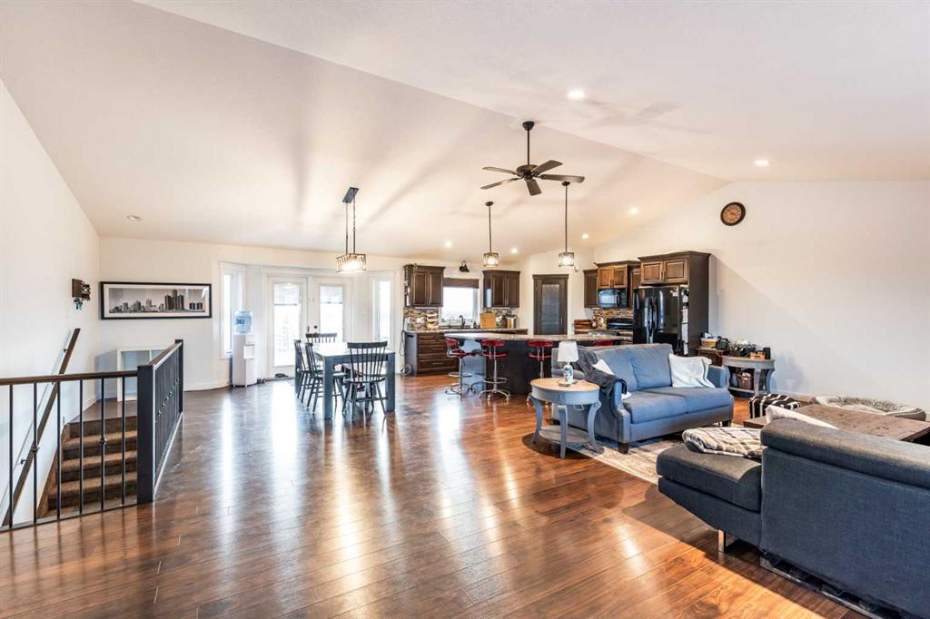 There is something to be said about escaping the city to your own little piece of paradise, especially when it\'s only a 20 minute drive! Tucked away in a small community just past Rattlesnake Lake, you will find this great home on a flat, well-planned 3.11 acre lot. The home was built in 2012 by Jade Homes and features a walk-out lower level and an upper floor with amazing vaulted ceilings and site-lines to the lake. The home features 5 bedrooms (3 up + 2 down) and 2.5 bathrooms , including a great en-suite with shower. Both floors offer tall ceilings and open floorplans which allows the space to move and flow with how you need it to. On the upper level, the vaulted ceilings play well with the open space , allowing the kitchen , dining and living room to flow together effortlessly. Each space is more than sufficient in its own right, but together they allow the space to feel huge and allow for easy entertaining or family meals. Every window you look out, you\'ll have a different view as stunning as the last, with views of the lake out your back door. The lower level has a drop everything zone and direct access to your heated double garage, which has 12 ft ceilings and a heater. There is also a dedicated laundry room, large flex space and a den/office. Your land is developed with some landscaping, full irrigation on the property and a dugout you can stock with fish or skate on in the winter. Don\'t forget the hen house and area for goats + chickens! The land is flat and open, with mature + new trees that will develop and give you even more privacy. The home has a septic tank + field and SMRID Rights. Come see why life is better in the country, and come make this piece of paradise your own.