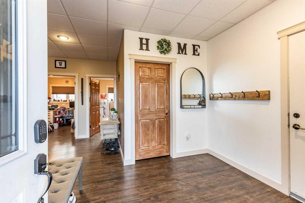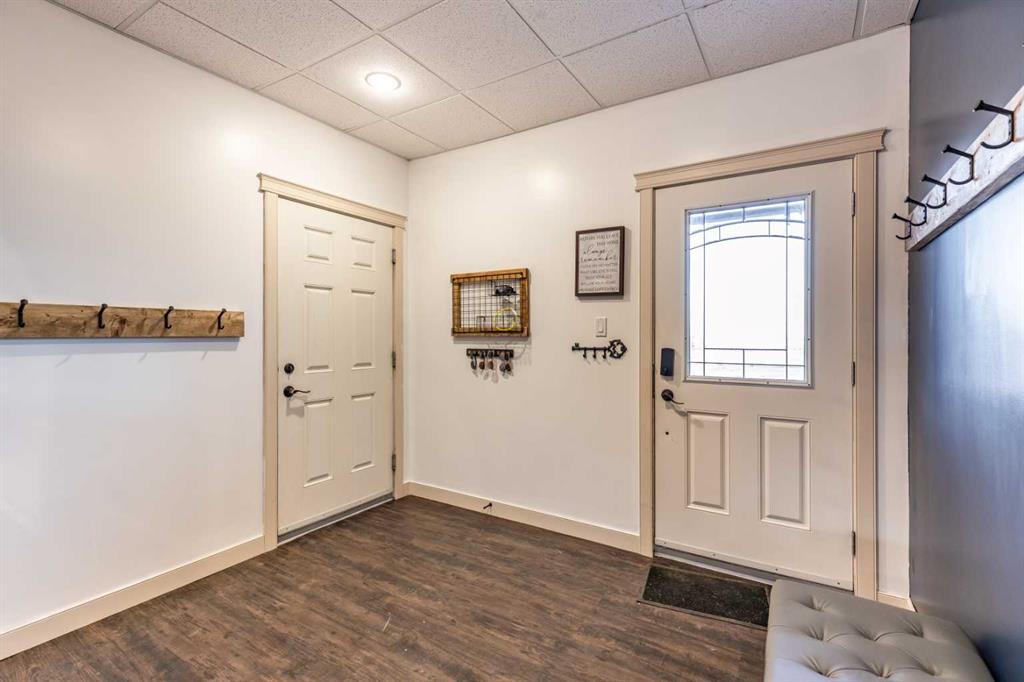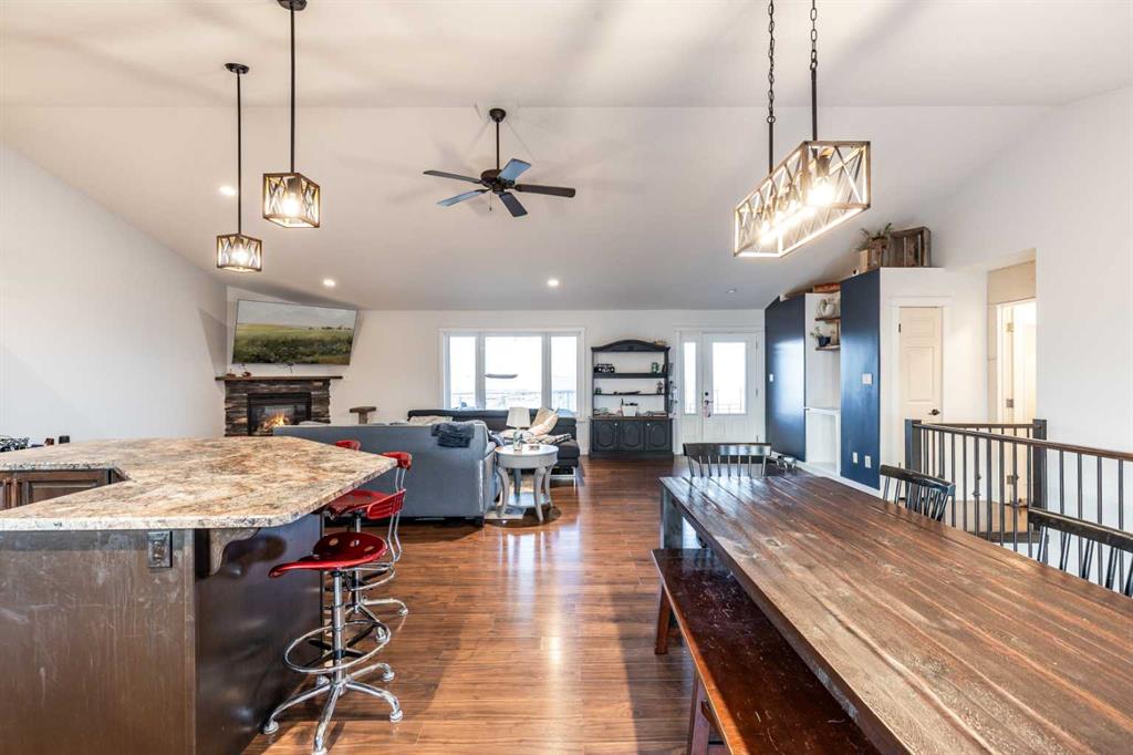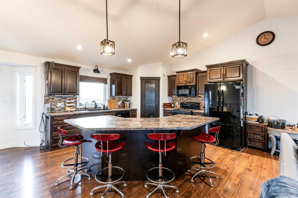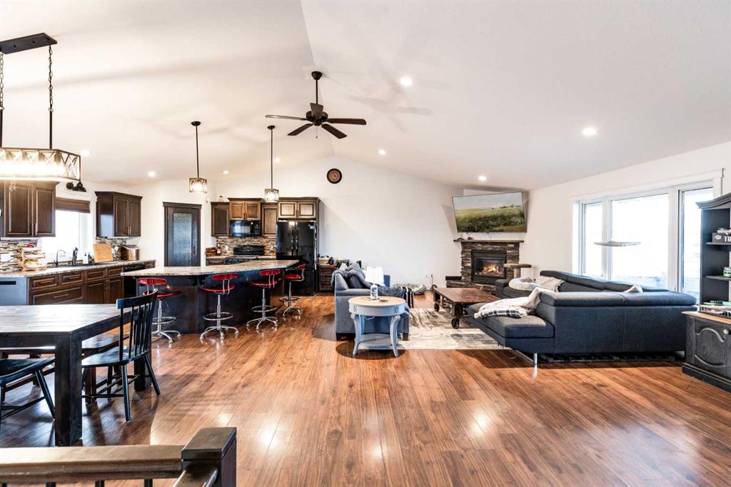 There is something to be said about escaping the city to your own little piece of paradise, especially when it\'s only a 20 minute drive! Tucked away in a small community just past Rattlesnake Lake, you will find this great home on a flat, well-planned 3.11 acre lot. The home was built in 2012 by Jade Homes and features a walk-out lower level and an upper floor with amazing vaulted ceilings and site-lines to the lake. The home features 5 bedrooms (3 up + 2 down) and 2.5 bathrooms , including a great en-suite with shower. Both floors offer tall ceilings and open floorplans which allows the space to move and flow with how you need it to. On the upper level, the vaulted ceilings play well with the open space , allowing the kitchen , dining and living room to flow together effortlessly. Each space is more than sufficient in its own right, but together they allow the space to feel huge and allow for easy entertaining or family meals. Every window you look out, you\'ll have a different view as stunning as the last, with views of the lake out your back door. The lower level has a drop everything zone and direct access to your heated double garage, which has 12 ft ceilings and a heater. There is also a dedicated laundry room, large flex space and a den/office. Your land is developed with some landscaping, full irrigation on the property and a dugout you can stock with fish or skate on in the winter. Don\'t forget the hen house and area for goats + chickens! The land is flat and open, with mature + new trees that will develop and give you even more privacy. The home has a septic tank + field and SMRID Rights. Come see why life is better in the country, and come make this piece of paradise your own.