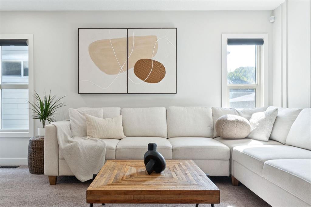A bright OPEN-TO-BELOW foyer welcomes you with expansive windows and beautiful EXPOSED CEILING BEAMS that highlight the home’s architectural charm. The main floor offers a dedicated OFFICE, a stylish powder room, and added ease with the NEST SMART SYSTEM. The gourmet kitchen serves as the centrepiece, showcasing UPGRADED APPLIANCES, a gas cooktop with chimney hood fan, an oversized island, and STRIKING FEATURE WALLS. The adjoining living room is warm and inviting with its GAS FIREPLACE and airy, light-toned finishes.