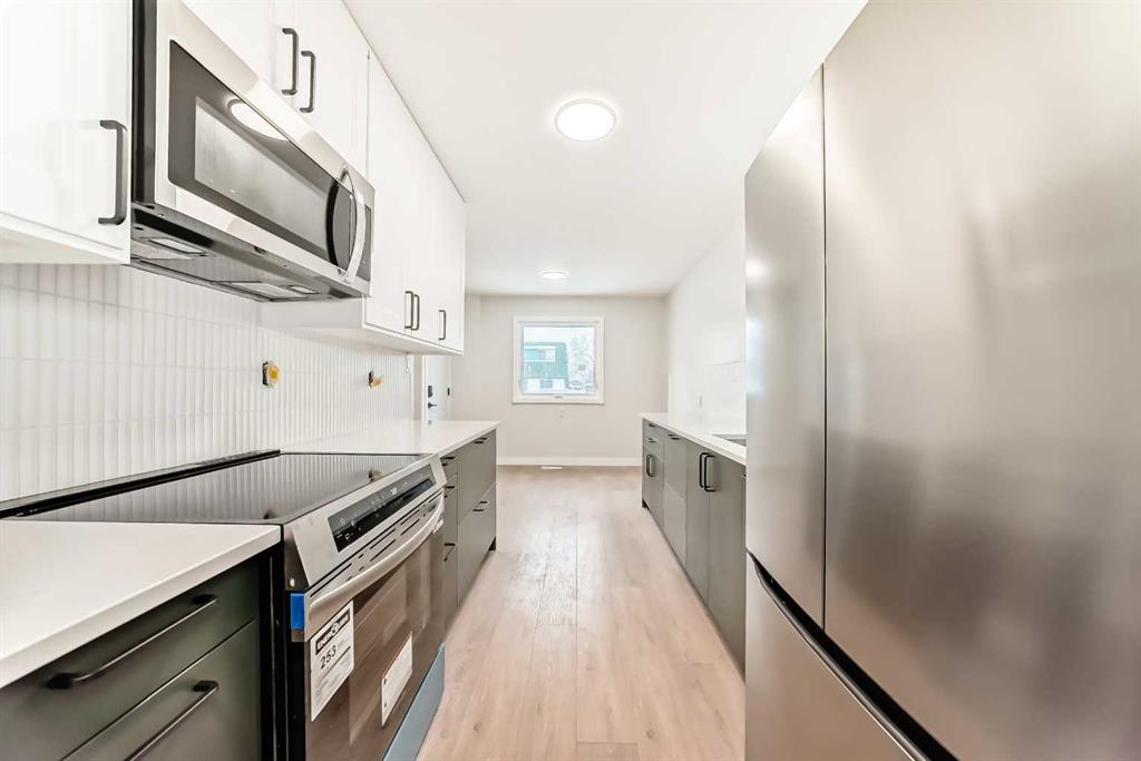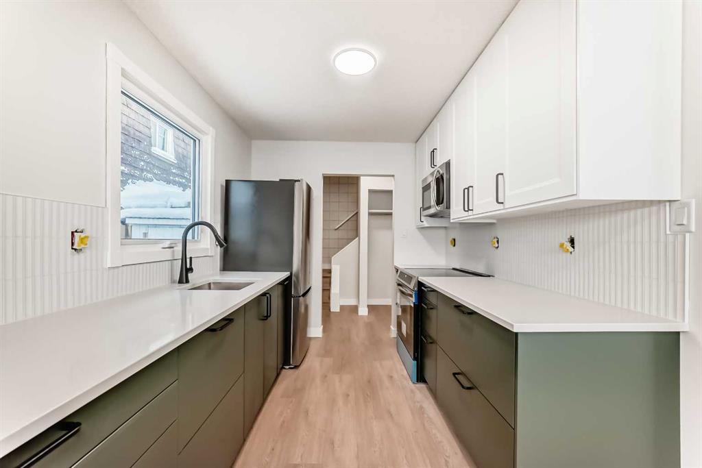First time home buyers and insightful investors - take note.!!! Top of the line renovation, just completed! and you\'re welcome - all the heavy lifting has been done - no expenses spared. This turn-key fantastic home features a galley style kitchen with BRAND NEW quartz counter tops, Frigidaire Induction stove, side by side Refrigerator, Microwave/hood fan and classic tiled back splash. Gorgeous deep green base cabinets with soft close drawers are paired with spacious white upper cabinetry. Your living room and cozy dining area offers a lovely view of the yard and sunsets. The main floor is completed with a half bathroom and a convenient side entrance-with an easy access storage shed. Upstairs features 3 good sized bedrooms, a full bath and a linen closet. The basement is fully finished with a rec room, laundry room and plenty of storage. Other features you will love about this property are, easy maintenance vinyl flooring throughout, new windows, knock down ceilings, new baseboards, new landscaping. To be noted as well, this property has a BRAND NEW TOP END 2 stage furnace and a BRAND NEW TOP END water heater, and fresh new paint throughout. This home is a gem with absolutely awesome neighbors. The location is ideal- close to Glenmore Trail and easy access to Deer Foot Trail. This charming home is nestled on a quiet street, close to shopping, transit, schools and parks. Ogden is a well established safe neighborhood - an up and coming hot spot - don\'t miss this investment opportunity!