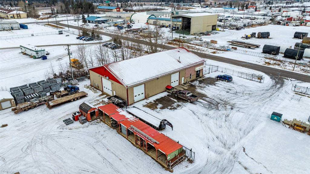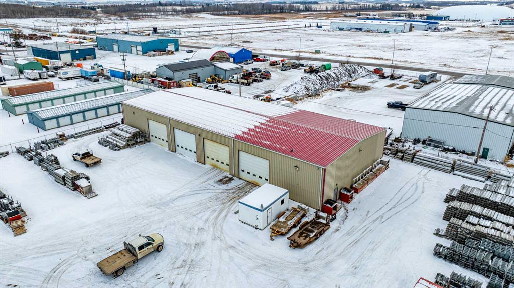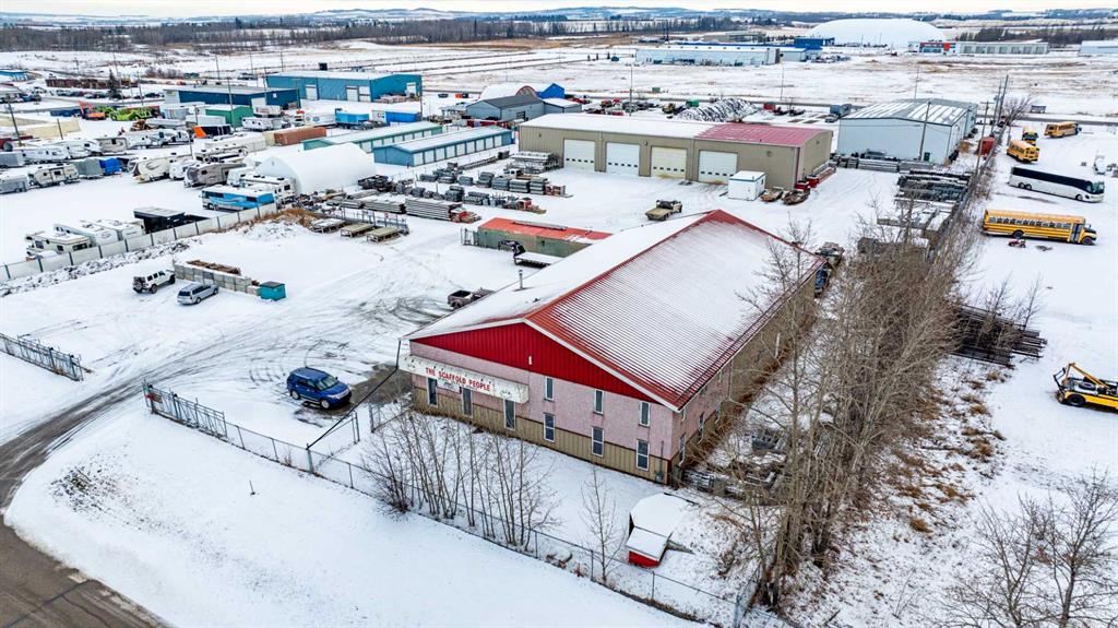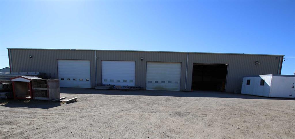 The Perfect Property for Your Business! This exceptional 2.29 acre commercial property offers the loads of space and versatility for a wide range of business uses. With two large standalone shops, a spacious yard, and a fully equipped one-bedroom suite, this property is ready for immediate use. The main building, approximately 6,000 sq ft and built in 1996, features a bright reception area, three offices, and one bathroom on the main floor. The office/showroom main floor is 60\'x30\' and shop portion is 70\'x30\'. The rear section includes a large working shop with three overhead doors, two radiant heaters, and two additional office spaces — all under a durable metal roof. Upstairs, you’ll find a spacious one bedroom suite that’s perfect for on-site living or employee accommodations including a developed living-room, bedroom, kitchen, 3 piece bath, and washer/dryer area. The second shop offers even more versatility with four large bay doors. One bay features a poured concrete floor, heating system, and a bathroom, while the remaining three bays provide dry gravel-floored storage for vehicles and equipment. The second building construction started sometime in 2002 and was completed sometime in 2004. The warehouse is 10,240 square feet. The yard is fully fenced and crossfenced, offering both paved and gravel surfaces for parking and maneuvering. Additional outbuildings include two enclosed sheds and a large open pole shed, providing ample space for storage or expansion. With excellent access, functional layouts, and extensive yard space, this property is move-in ready and perfectly equipped to support your business operations.