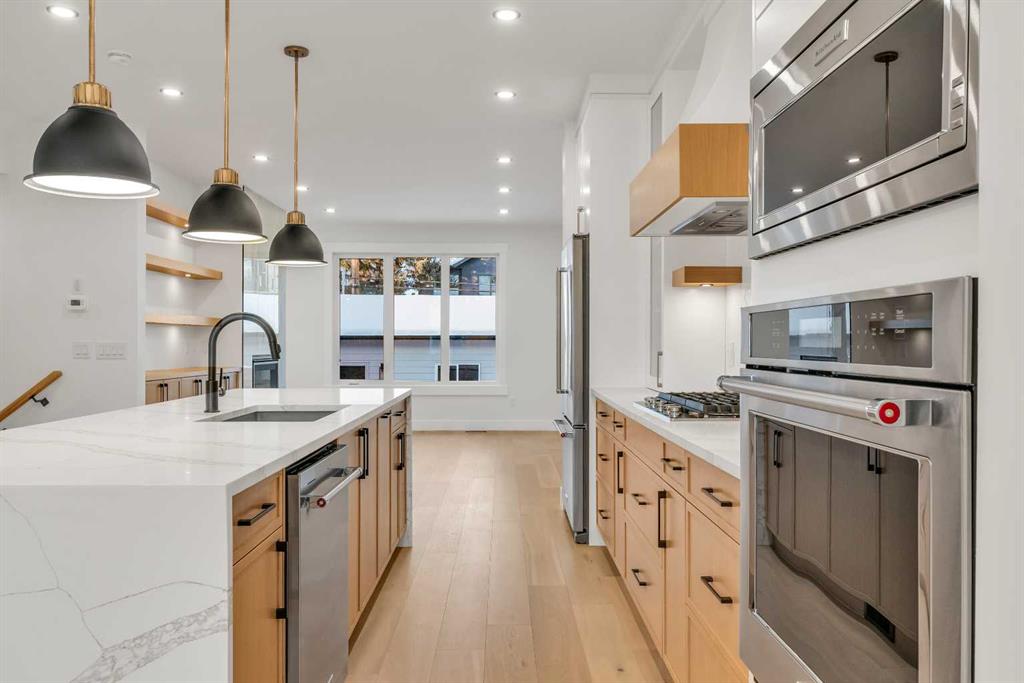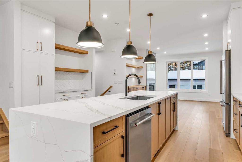 ***OPEN HOUSE: Sat, Dec 6th 12:00 - 2:00pm*** Set on a QUIET TREE-CANOPIED STREET IN MOUNT PLEASANT, this newly built home brings together refined craftsmanship and a layout designed for everyday comfort. A SOUTH-FACING FRONT PATIO introduces the property with warm light and a welcoming place to enjoy peaceful moments outdoors. Inside, CUSTOM MILLWORK in the front foyer sets an elevated tone and leads into an elegant dining room anchored by a WOOD FEATURE WALL that adds depth and character. A beautifully appointed GOURMET KITCHEN encourages both creativity and connection with high-end KITCHENAID APPLIANCES including a GAS COOKTOP and BUILT-IN WALL OVEN and MICROWAVE. STONE COUNTERS, UNDER-CABINET LIGHTING, an OVERSIZED CRUSHED GRANITE SINK, a GARBAGE PULLOUT, and an organized storage layout ensure the space functions effortlessly. A WATERFALL-EDGE ISLAND becomes the gathering point of the home with its clean lines and generous prep space. Adjacent to the kitchen, a walk-through area includes a WALL PANTRY with APPLIANCE COUNTER while an ENCLOSED ROOM offers versatility as a SECOND PANTRY or MAIN FLOOR OFFICE for structured workdays. An inviting living area sits at the back of the home, blending CUSTOM BUILT-IN SHELVING with a GAS FIREPLACE that overlooks the backyard for a relaxing evening atmosphere. A practical mudroom with ABUNDANT STORAGE sits near a tucked-away powder room styled with a WATERFALL-EDGE VANITY. A GLASS-RAILED staircase with HARDWOOD TREADS leads upstairs to a level finished entirely in HARDWOOD FLOORING. A central BONUS ROOM with a WOOD FEATURE WALL creates thoughtful separation between the primary and secondary bedrooms. The primary retreat feels serene with a COFFERED CEILING, LARGE WALK-IN CLOSET, and a finely crafted ENSUITE featuring a STEAM SHOWER, FREE-STANDING TUB, DUAL VANITY, and ELECTRIC IN-FLOOR HEATING for added morning comfort. Two additional bedrooms, a well-designed 4-piece bath, and a convenient laundry room complete this floor. A FULLY DEVELOPED BASEMENT extends the home with a WET BAR and BEVERAGE CENTER that simplify weekend hosting. A spacious rec room includes ENTERTAINMENT BUILT-INS and room for movie nights, games, or fitness setups. A fourth bedroom with LARGE WALK-IN CLOSET and a 4-piece bathroom offer privacy for guests while an enclosed FLEX ROOM provides options for a FIFTH BEDROOM, HOME GYM, or OFFICE depending on lifestyle needs. Enjoy a PRIVATE BACK YARD with EXTENDED GREEN SPACE for children and pets and a generous patio area suited to barbeques and outdoor relaxation. Added conveniences include ROUGH-IN FOR AIR CONDITIONING, a DOUBLE DETACHED GARAGE with 8-FOOT DOOR, EV CHARGER READY ROUGH-IN, and a PAVED BACK LANE. This residence delivers modern luxury, thoughtful design, and walkable inner-city living close to CONFEDERATION PARK, SAIT, and the cafés and restaurants along 19 Street. A sophisticated offering for buyers seeking exceptional design, quality finishes, and a truly livable inner-city setting.