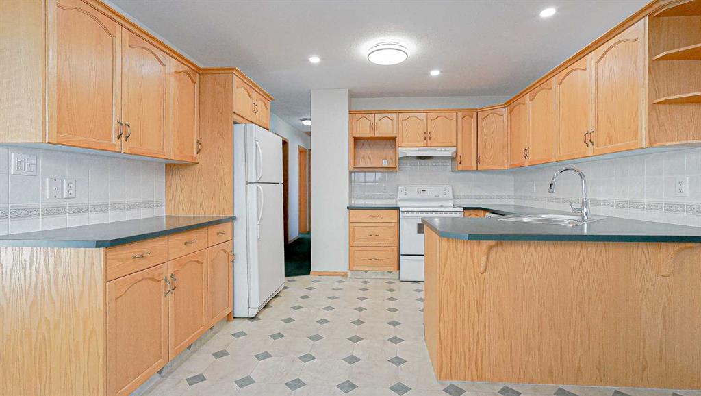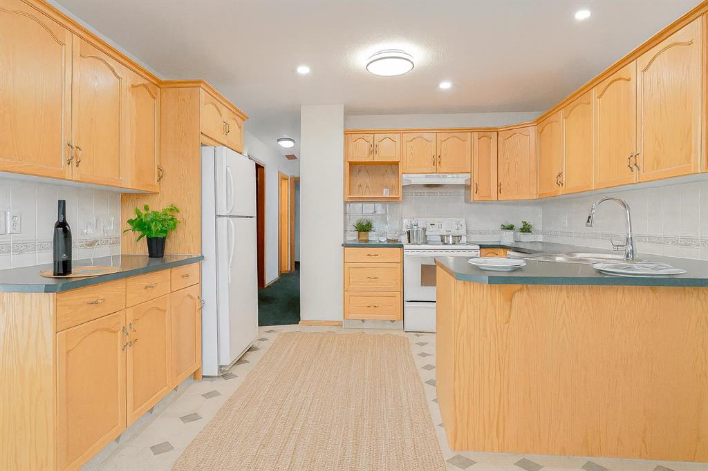 Welcome to this 5 bedroom, 2 bathroom home with an 18x24 detached garage, backing onto a greenspace/park. This bungalow offers plenty of windows and natural lighting with two family/living rooms on the main floor, one boasts a gas fireplace. Spacious kitchen offers tons of cabinet and counter space and includes a breakfast bar and a generous dining area. There are 3 bedrooms upstairs, (the primary bedroom has double closets) and a 4 pc bathroom with a jetted tub. The basement includes a 3rd living area, 2 more bedrooms (one the window does not meet egress), a bathroom with a shower and a large laundry/utility room with tons of storage. The yard is fenced and landscaped with some new sod, a shed & RV parking. Plus you have an 18x24 detached heated garage, with door access from either side. There is a deck overlooking the yard as well. All of this backs onto a park/green space with walking paths just steps away from one of the greatest views in the city! Shingles on the home and shed were done in 2024 & the garage was done in October 2025. Be sure to reach out to your favourite agent to view this great family home. ** Some photos have been virtually staged **