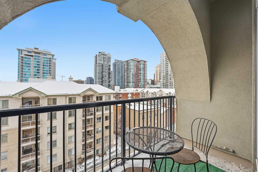 This 2 storey penthouse enjoys uninterrupted 180° city views and a bright, inviting layout designed for relaxed living and effortless entertaining. Soaring 18’ ceiling height combines with oversized windows to create an uplifting main floor living room where natural light defines the space, while a gas fireplace adds warmth on cooler evenings. Patio sliders extend the room onto the 1st west facing balcony where skyline views set a stunning backdrop for morning coffees, quiet breaks or casual after-work unwinding. Beautifully updated, the kitchen delivers abundant 2 toned cabinetry, generous prep space, a raised breakfast bar for easy meals and clear sightlines into the dining area that supports comfortable hosting. A bold chevron feature wall and distinctive lighting give the dining room character and personality, adding visual interest without sacrificing function. Conveniently a powder room and in-suite laundry complete the main level. Ascend the modern geometric railed staircase to the upper level where an open to below loft provides valuable flexibility for a home office, creative studio or fitness space. The primary bedroom offers a restful retreat with access to the 2nd west balcony, ideal for peaceful evenings or weekend lounging and includes a walk-in closet for practical storage. A second bedroom sits nearby and pairs easily with a well kept 4 piece bathroom. Titled underground parking adds to your safety and convenience. Phenomenally location to support an easy, walkable lifestyle with immediate access to favourite local pubs, restaurants and cafés along both 4th Street and Uptown 17th. Enjoy the close proximity to the LRT Station, downtown core, Stampede Park and the MNP Community & Sport Centre all within minutes, while surrounding amenities deliver endless options for shopping, fitness and entertainment. This penthouse blends lively urban energy with private top floor comfort in one of Calgary’s most connected inner-city settings.