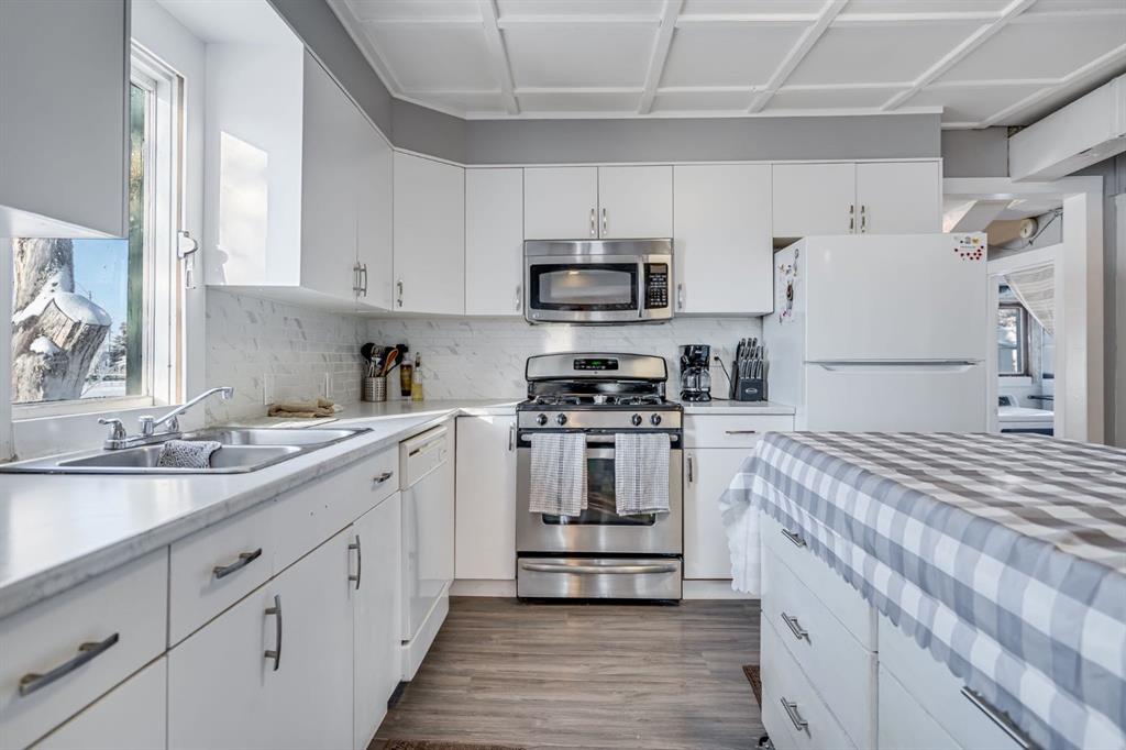 Check out this bungalow located on a great size corner lot (50x120) across from Hill Park and Playground in the Hamlet of Blackie. You will find 3 sheds on the property with a newer chain link fence and lots of room to potentially build a garage (MD approval). With 2 decent sized bedrooms and a large kitchen and living area, what a great investment property or first home. The flooring, kitchen, paint, bathroom and furnace (replaced) were all updated within the last 5 years. The K-8 Blackie School is just a couple blocks away. The community of Blackie is family oriented with monthly activities for all ages. Under 20 min drive to High River, 30 mins to Okotoks & 35 mins to Calgary. Property and home “As-Is, Where-Is” with no warranties or representations.