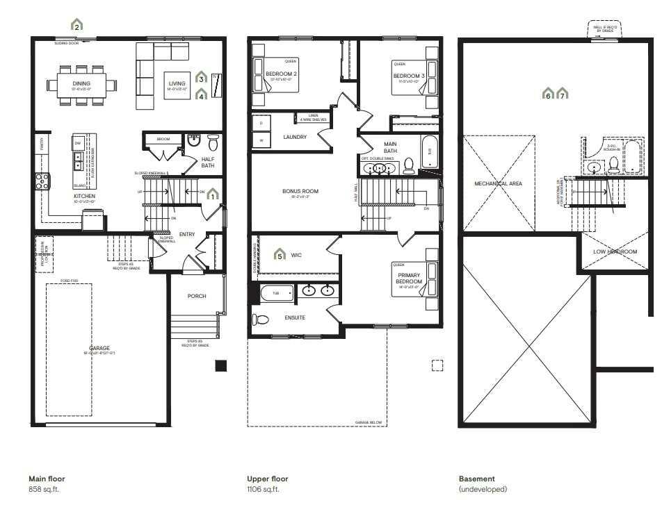 Welcome to the Marigold 3! This beautifully designed 4-bedroom, 2.5-bathroom home offers the perfect blend of comfort and style, ideal for growing families or those who love to entertain. The primary ensuite comes with a tiled standing shower, while the additional bonus room provides the flexibility for a home office, playroom, or media space. The open-concept main floor features upscale finishes, including a chimney-style hood fan, kitchen cabinets to the ceiling, a built-in microwave, gas rough in\'s for the stove and railings leading to the second floor, adding a touch of elegance throughout. Thoughtfully laid out with both function and flow in mind, the Marigold 3 offers a modern living experience in every corner. Photos are representative.