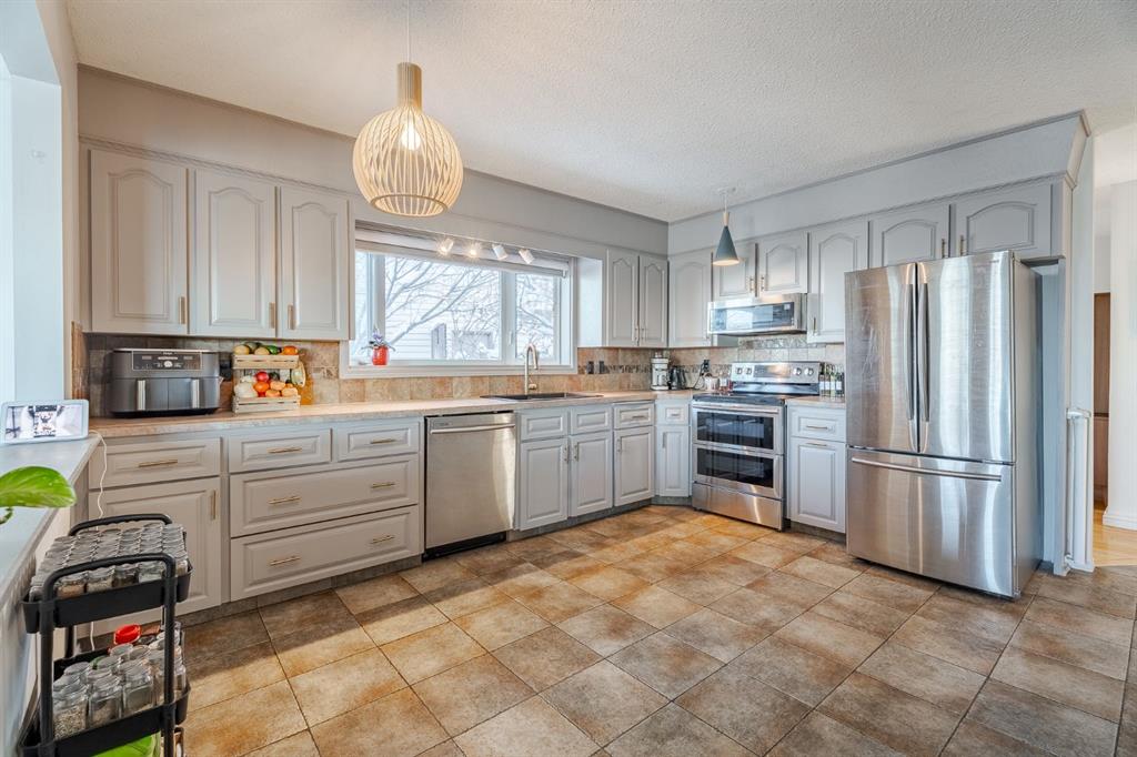Discover this spacious and well-maintained 1,578 sq. ft. bungalow, offering exceptional comfort and versatility; ideal for a growing family. Located on a quiet, desirable crescent this fully developed home features 4 bedrooms and 3 bathrooms. You are immediately welcomed by gleaming wood floors and an abundance of vinyl windows that fill the space with natural light. The open-concept kitchen features stainless steel appliances and provides ample counter and cupboard space. The family room features a cozy gas fireplace and leads to your incredible outdoor living space. The massive updated composite deck with sleek glass panel railing offers expansive views and is perfect for entertaining while maintaining a private oasis. Back inside the primary bedroom features plenty of closet space and private 2-piece ensuite. Two more generously sized bedrooms, an updated 4- piece bathroom and convenient main-floor laundry room with built-in cabinetry complete this level. The fully developed basement expands the living space with a large media room, gym area, and recreational zone. An additional bedroom, a 3-piece bathroom (plus sauna) make this level ideal for guests or extended family. A flex space—currently used as an office—plus ample storage with plenty of built-ins enhances the home’s functionality. Outside, the massive backyard offers stunning views and endless room to play, garden, or entertain. The attached double garage is drywalled, insulated, and heated—adding valuable convenience year-round. Located only minutes from Nose Hill Park, the Winter Club, shopping, schools and all amenities. This exceptional bungalow combines comfort, updates, and room to grow—truly a place to call home.
