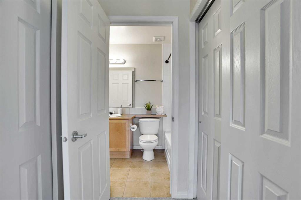 The full bathroom is nicely situated adjacent to the bedroom and even has a cheater door!