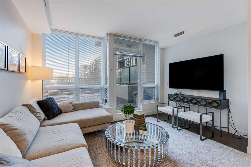 This executive condo is one of the best units to hit the market in the Waterfront in years. Perfectly positioned in a PRIME COURTYARD LOCATION , this unit showcases a spectacular 250 SQ.FT private OUTDOOR PATIO — an entertainer’s dream and a standout feature RARELY AVAILABLE in the building. Inside, the home offers a beautifully upgraded interior designed for modern urban living. The kitchen features stainless steel appliances, a gas cooktop, QUARTZ countertops, and integrated panel-front refrigerator and dishwasher. The open dining area includes a custom quartz dining table, flowing seamlessly into the bright and spacious living room with large windows overlooking the courtyard. The primary bedroom includes a BUILT-IN bedroom suite, and the spacious bathroom offers an oversized walk-in shower. A quartz-finished home management centre provides the perfect workspace or tech station, and the convenience of in-suite laundry adds to the comfort. NEW VINYL PLANK FLOORS throughout and AIR CONDITIONING for the summer months! Additional features include a HEATED UNDERGROUND parking stall and SECURE same-floor STORAGE (2nd floor, not in the parkade), offering convenience and peace of mind.