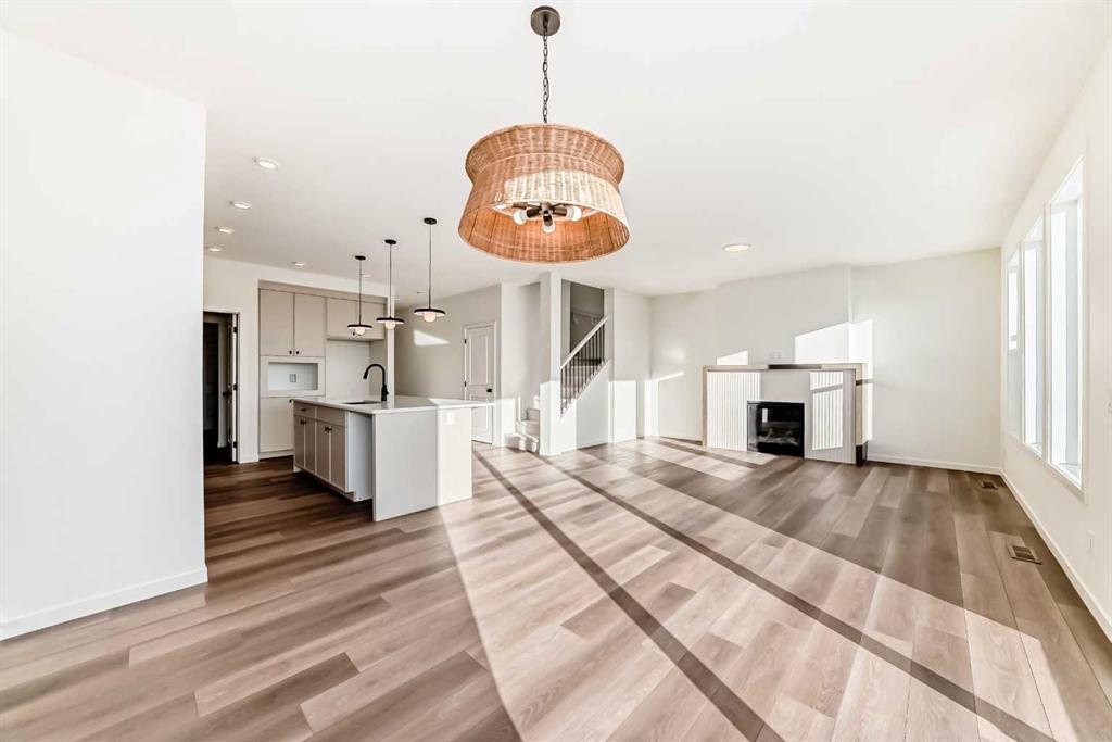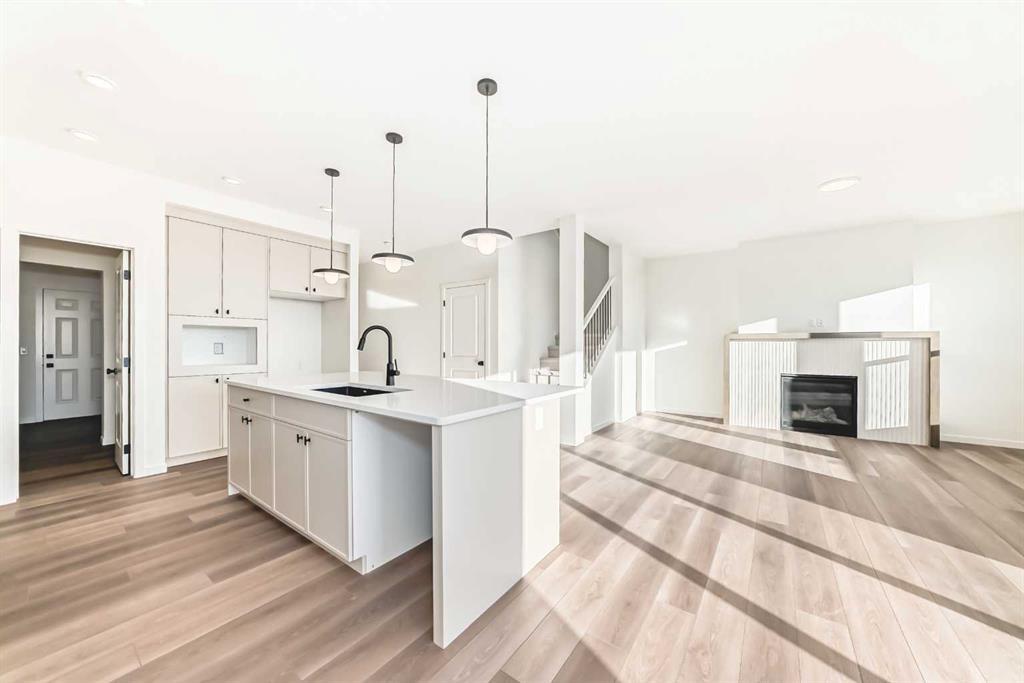 Move in today. This brand-new Sierra R by Daytona Homes delivers 2350 square feet of finished living space with a smart, functional layout that actually works for families. The main floor opens with a bright foyer and front den, ideal for a private office or quiet flex space. The kitchen is clean, modern, and efficient, finished with a central island, upgraded lighting package, and a walk-through pantry that keeps clutter out of sight. It flows directly into the dining nook and great room, where oversized windows and a gas fireplace create a warm, open main living zone buyers want.