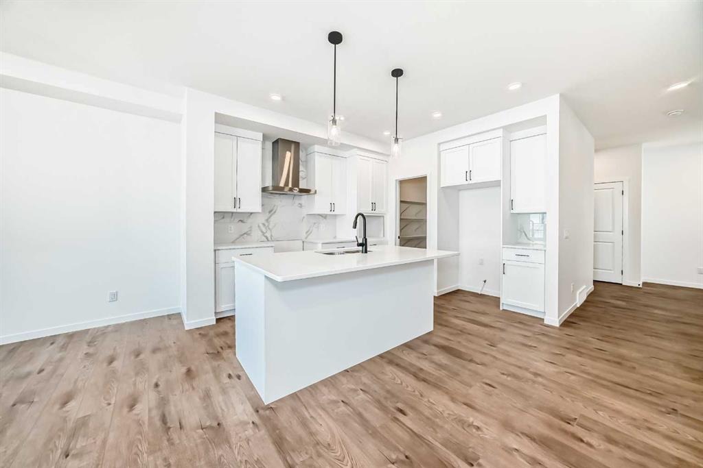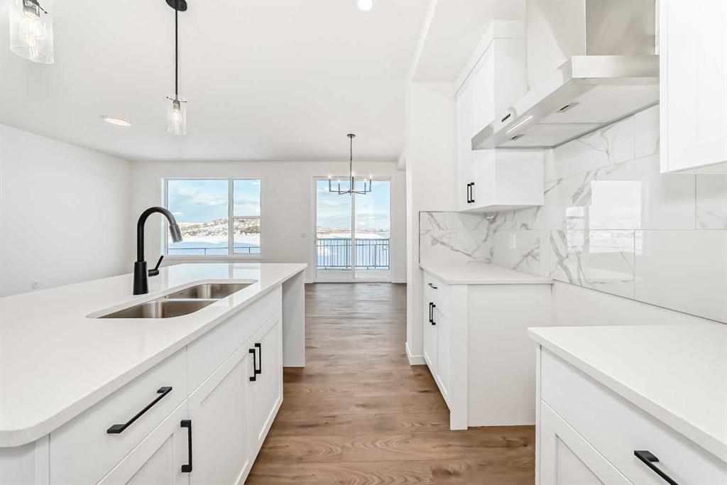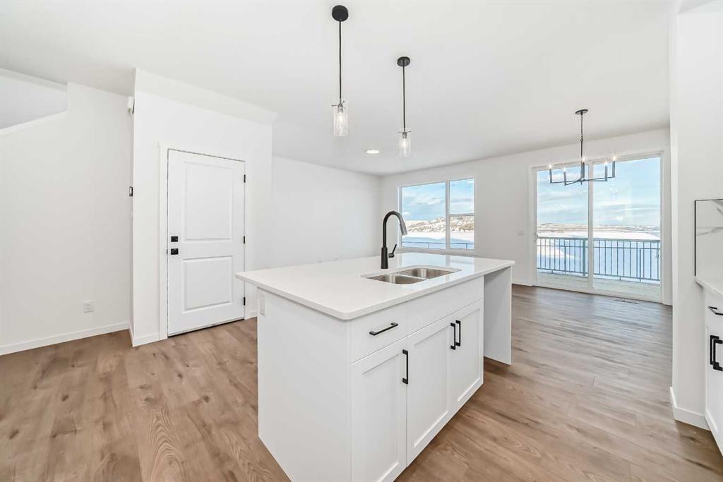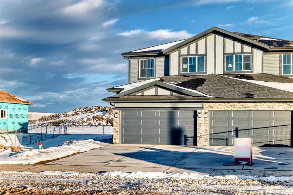 This brand-new half duplex in Cochrane’s Southbow Landing is fully completed and move-in ready, offering a spacious layout that’s built for real life and a built in mortgage helper in the form of a fully developed LEGAL suite ! The main floor delivers an open, bright footprint, a large foyer leads straight into a clean, modern kitchen with a functional island, plenty of prep space, and an easy flow into the dining nook and great room. The living area is anchored by a sleek electric fireplace and framed by oversized windows that pull in natural light all day. Direct access to the rear deck gives you smooth indoor-outdoor living without hassle.