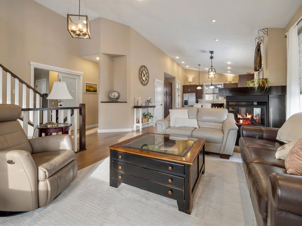 Pride of ownership and maintenance shines throughout in this Executive Modified Bi-Level home in desirable Sixmile. Upgrades abound with brand new exterior hardiboard siding just recently added to give excellent curb appeal. The owner is a garage enthusiast so of course the garage is heated and has epoxy floors. There is also a heavy duty tire rack, stainless steel foldable workbenches, pegboards, and fluorescent lighting above. The current owners also had the furnace replaced in 2021 with a 2 stage, 2 zone Elite Series unit from Kodiak Heating. They have added landscaping improvements over the years with walking paths and slope improvements. Owner has kept up with sealing the exposed aggregate driveway every few years. There is also a man door from the garage to the backyard. Inside there is a large welcoming entry open to above. Tile flooring at entry with a closet, and flows into laundry room with entrance to the garage. Main floor has hardwood floors & vaulted ceilings. Living room and dining room are separated by a three sided gas fireplace. Kitchen is well appointed with plenty of cupboards, quartz counters, large island, built-in microwave, built-in oven, built-in gas range with hood fan, door to covered deck out back that features a built-in gas fireplace on the deck and gas line for your BBQ. Back inside, there are 2 bedrooms on the main(one currently being used as an office) and a full bathroom with tub/shower combo. The back bedroom also has an entrance to the deck. The 637 square foot primary retreat is above the garage with a large bedroom, 5 piece en-suite with double sinks, separate tub, and walk-in tiled shower. Primary en-suite flooring is tile and has electric in-floor heat. There is also a separate toilet room. Primary retreat also has a 15x8 walk-in closet with closet organizers! Basement is fully finished with large family room, gym space with commercial grade rubber sports flooring, a 4th bedroom, another full bathroom, a full bar area with bar fridge, and a good size furnace/utility room with plenty of under stairs storage. There is a door to the covered patio with a few steps up to the backyard. Yard is fenced and landscaped with underground sprinklers in the front yard. Home has conveniences of central a/c and central vac and even the smoke alarms have been updated. Move in and enjoy!