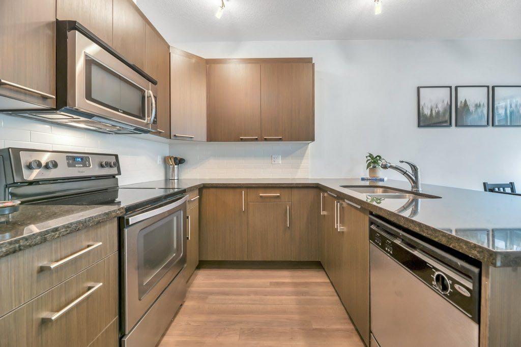 This is the one! This immaculate one owner townhome is one of only a handful of units in popular Chestermere Station with a fenced yard and full basement. You can’t beat this location with so many of Chestermere’s amenities just steps from your front door. Walk to shopping, restaurants, bars, gyms, the library and of course the lake, beach and the many picturesque parks and pathways that Westmere has to offer including an off leash dog park. The cute little covered front porch provides a touch of charm. Step into the spacious tiled front entryway with closet and a 2 pc powder room which is nicely tucked away from the main living space. Up just a couple of steps is your spacious and sunny open concept living space. The modern kitchen is well equipped with wood grain European style cabinetry, stainless steel appliances, subway tile backsplash and granite counters. Between the kitchen & dining area is a counter height peninsula with extra seating where family & guests will love to gather. You can conveniently access your back patio from the bright and cheery dining area allowing for easy BBQing year round. Other thoughtful upgrades you’ll appreciate include durable and easy care laminate flooring plus 9’ ceilings with knock down finish. Upstairs you’ll find 3 nice sized bedrooms including the primary bedroom complete with a 3 pc ensuite and huge walk in closet that even has a window. The other 2 bedrooms share the main bath with a tub which is a must have for any little ones. Upstairs laundry is another convenience you are going to love. This unit comes with a rare full basement that is ready for you to develop to suit your needs. A big window provides lots of light and means you can add a 4th bedroom if it suits your needs. The spacious yard is fenced making it perfect for kids or pets and it backs onto a grove of mature trees making this one of the most desirable locations in the community. Your fur babies are welcome in this pet friendly with board approval complex, but there’s no need to bring your shovel since snow removal and ground maintenance is included. You are going to love living here.