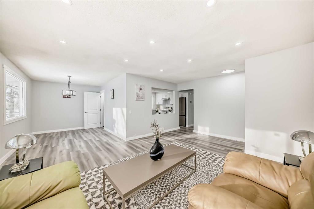 Welcome to this beautifully renovated and thoughtfully updated home, perfectly situated in the family-friendly community of Dover. Offering just shy of 1,100 sq. ft. on the main level and a total of 5 bedrooms and 2 full bathrooms, this property delivers exceptional comfort, functionality, and versatility for homeowners and investors alike. Step inside to a bright and inviting living room, where large windows fill the space with natural light and highlight the modern LVP flooring that flows seamlessly throughout the main level. The adjoining dining area provides an ideal space for family dinners or hosting guests, with easy access to the fully updated kitchen. Offering an attractive blend of style and efficiency, the kitchen features sleek, high-gloss cabinetry, quartz countertops, and stainless steel appliances, creating a fresh, contemporary look that will appeal to any modern homeowner or tenant. The main level is complete with three well-sized bedrooms, a beautifully renovated full bathroom, and the convenience of an in-suite stacked washer and dryer—making this space entirely self-sufficient. A separate side entry leads to a spacious, self-contained illegal suite, providing excellent flexibility for extended family living or potential rental income. This lower-level suite includes two additional bedrooms, a full bathroom, a generous family room ideal for relaxing or entertaining, and a well-appointed kitchen. With its own dedicated laundry, the suite offers complete independence and privacy. Located in a prime area of Dover, this home offers easy access to major routes including 36 Street, 26 Street, 17 Avenue, and Peigan Trail—making commuting simple and convenient. Residents will appreciate being just minutes from shopping centers, transit options, schools, playgrounds, and numerous community amenities. Whether you\'re looking for a move-in-ready family home or a savvy investment property with excellent rental potential, this beautifully renovated home checks all the boxes. Don\'t miss the opportunity to make this exceptional property yours!