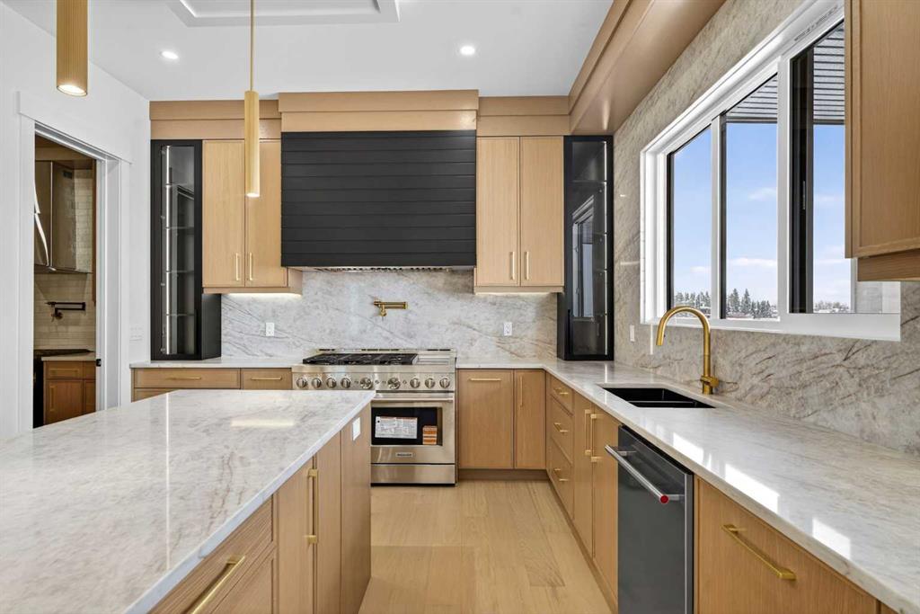 Experience luxury in this 7-BEDROOM AND 7 BATHROOM home BACKING ONTO THE BEAUTIFUL CHESTERMERE LAKE. This home offers over 5700 square feet of living space with HIGH-END FINISHES ALL AROUND which must be seen. The main floor welcomes you WITH 10 FOOT CEILINGS, a WET BAR, BEDROOM with a 3-piece ensuite, DINING ROOM, KITCHEN, SPICE KITCHEN, LIVING ROOM, and another 2 piece bathroom. The main floor\'s mudroom has built-in shelving leading to a TRIPLE-CAR GARAGE. Upstairs you have 9 FOOT CEILINGS, a LARGE BONUS ROOM with a spectacular view of the lake, the primary bedroom has a HIS AND HER CLOSET AS WELL AS A 5-PIECE ENSUITE. Upstairs also has an additional 3 bedrooms, one with a jack-and-jill bathroom and the other with its own 3-piece bathroom and a laundry room. The basement is a FULL DEVELOPED WALK-OUT LEGAL SECONDARY SUITE WITH 9 FOOT CEILINGS, a full kitchen, recreation room, 2 additional bedrooms, one full bathroom and a half bathroom as well as a second laundry room. This home offers a retreat you will never want to leave!