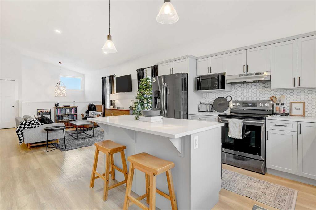 This legal up/down duplex showcases quality craftsmanship and modern finishes, featuring quartz countertops throughout, vinyl plank and tile flooring, a tile backsplash, raised ceilings, and custom built-in wood shelving in the closets. The main floor offers 3 bedrooms and 2 bathrooms with an open-concept layout that includes a spacious living and dining area, a modern kitchen, two bedrooms, a 3-piece main bathroom, and the primary bedroom offers a 3-piece ensuite and walk-in closet. From the kitchen, step out onto the deck and enjoy the landscaped and fenced backyard. The 2-bedroom, 1-bathroom basement legal suite mirrors the same open-concept design with its own living area, dining space, kitchen, two bedrooms, and a 3-piece bathroom. Designed with energy efficiency in mind, the home includes two high-efficiency furnaces, two Navien hot water-on-demand systems, LED lighting, and Low-E argon windows. Yard is landscaped with tasteful washed rock that makes for hassle free maintenance! Whether you’re looking to invest or live on one level while renting the other, this property is a rare find in one of Grande Prairie’s most popular neighbourhoods. Close to amenities, restaurants, playgrounds, and more! This truly is a must see.