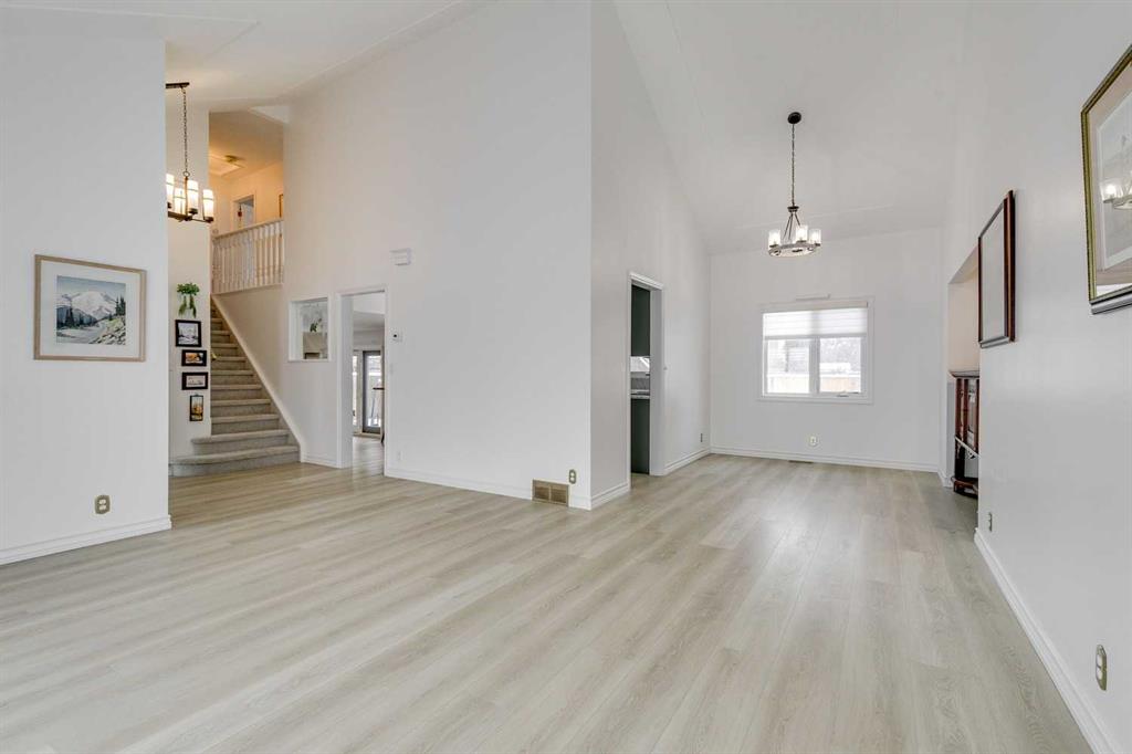 Step inside to soaring vaulted ceilings and a flood of natural light that instantly makes the home feel open and inviting. The entire main and upper level has been updated with luxury vinyl flooring, fresh white paint, and thoughtful new lighting throughout, creating a bright, modern feel from the moment you walk in.