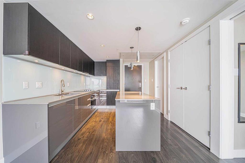 The open-concept layout is smartly designed, featuring floor-to-ceiling windows, a contemporary colour palette, and a highly efficient use of space. The modern kitchen includes built-in appliances—refrigerator, oven, electric cooktop, dishwasher, and garburator—along with a central kitchen island perfect for dining and meal prep.