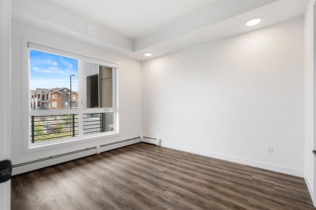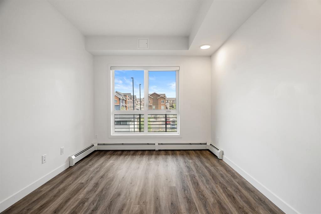 Step inside to discover an open-concept layout that maximizes space and natural light. The kitchen is thoughtfully designed with quartz countertops, sleek full-height cabinetry with soft-close doors, and stainless steel Whirlpool appliances, making it both functional and stylish. The living and dining area flows seamlessly onto a generous west-facing balcony, that includes a built-in gas line for BBQs — an inviting space for entertaining or simply enjoying sunsets.