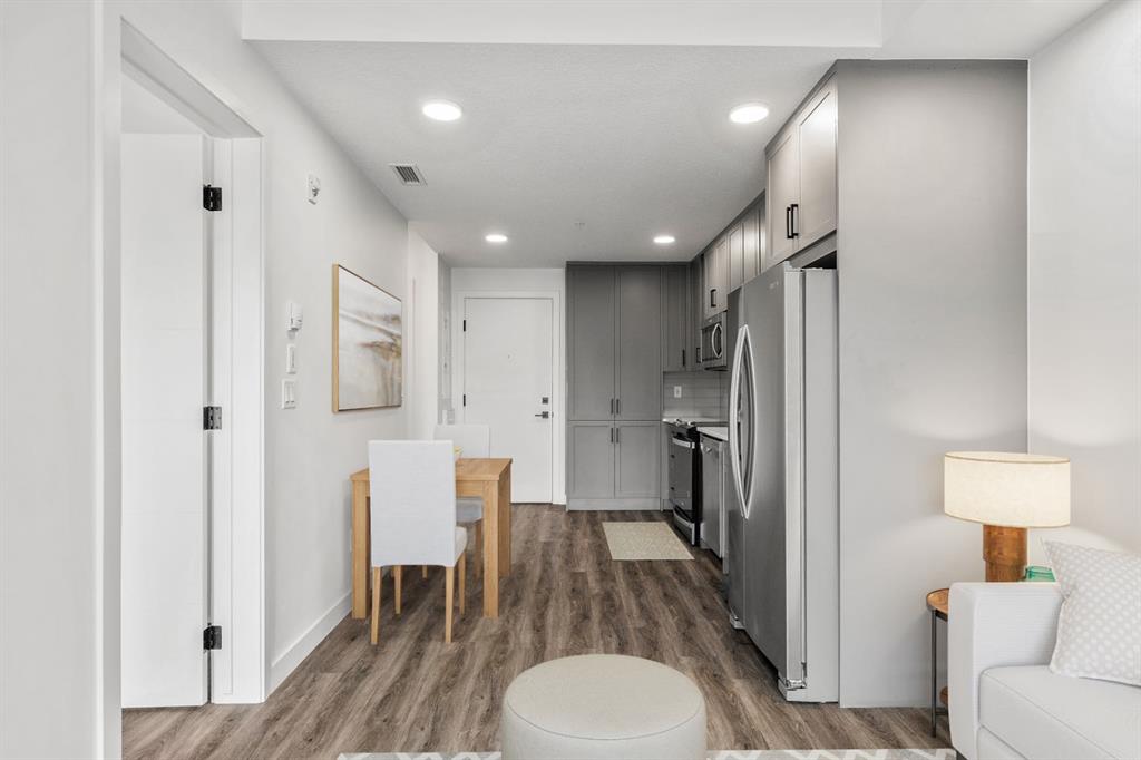 The unit also comes with a titled underground heated parking stall and an assigned storage locker, offering peace of mind and extra convenience. The building itself is well-maintained, featuring elevator access, a welcoming lobby with modern décor, and secure common areas. This pet-friendly building is ideal for animal lovers, featuring its very own dog run — a rare and welcome amenity that adds to the lifestyle appeal.