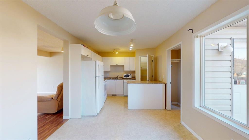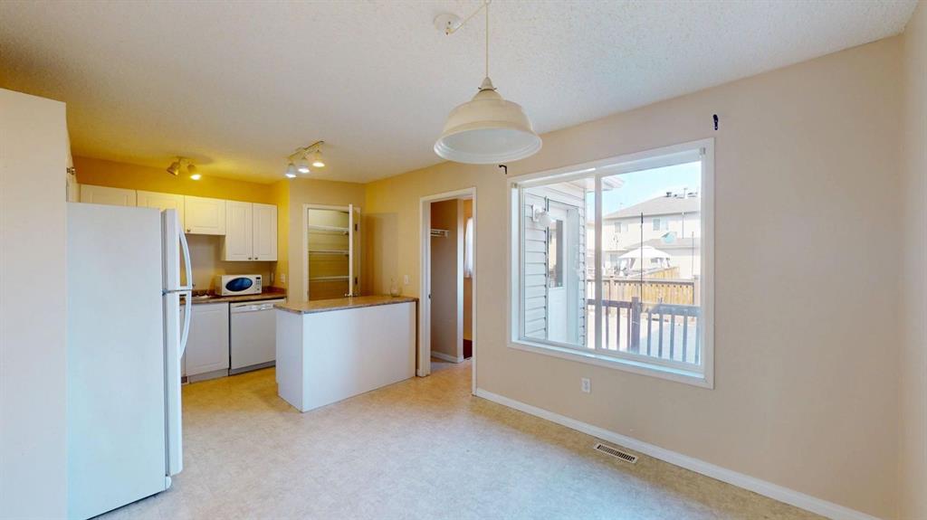 Welcome to 117 Kodiak Crescent, located in the subdivision of Bear Ridge! This half duplex is fully developed and would be an economical choice for anyone looking to get into the home buying market. With low condo fees and easy upkeep, this unit will please even the most discerning of buyers. Upon entering the main level from the double parking pad in front of the home, you are greeted with an inviting living space adorned with a gas fireplace that flows into the eat in kitchen, fully equipped with an island and corner pantry. Off the kitchen is a full sized deck that leads to the fully enclosed back yard, perfect for your four legged friends! The main level also offers a two piece powder room that conveniently doubles as the main floor laundry. Heading to the basement, there is one bedroom, a three piece bath with a stand-up shower, and another living room, complete with a fridge and sink, providing endless opportunities for entertaining friends. If it\'s privacy you\'re looking for, the separate entrance to the basement can be engaged by simply locking the door to the kitchen. Perfect if you have family on an extended stay! On the top level, are three generously sized bedrooms including the primary that has its own walk-in closet. The four piece bath and linen closet complete this floor. Within a one minute walk to the bus stop, great schools within walking distance, and the Birchwood Trails just across the main throughway, this is one property you don\'t want passing you by. The price is on pointe, and the low, low condo fees make it an easy choice.