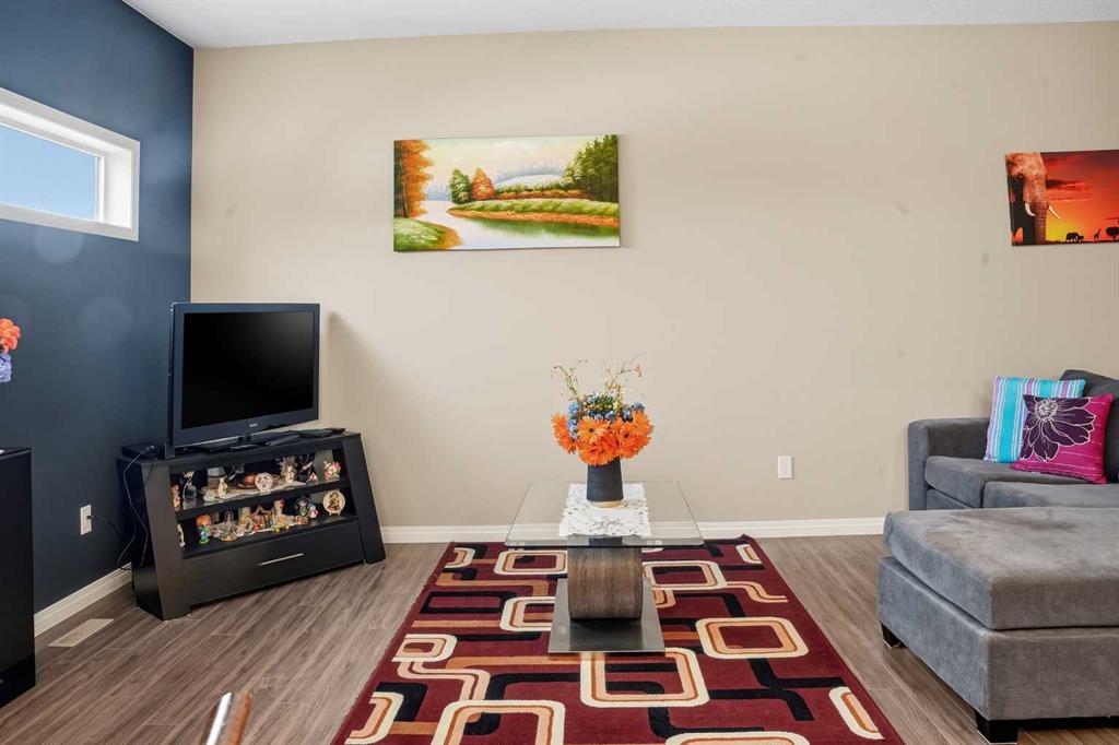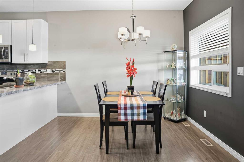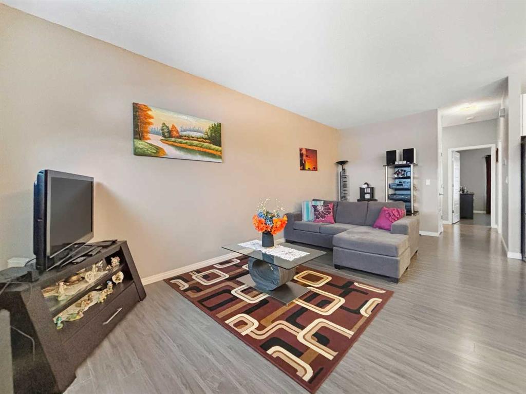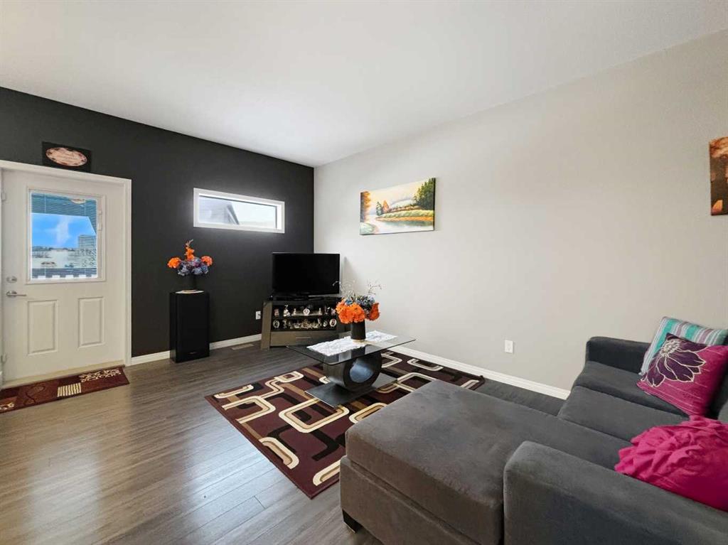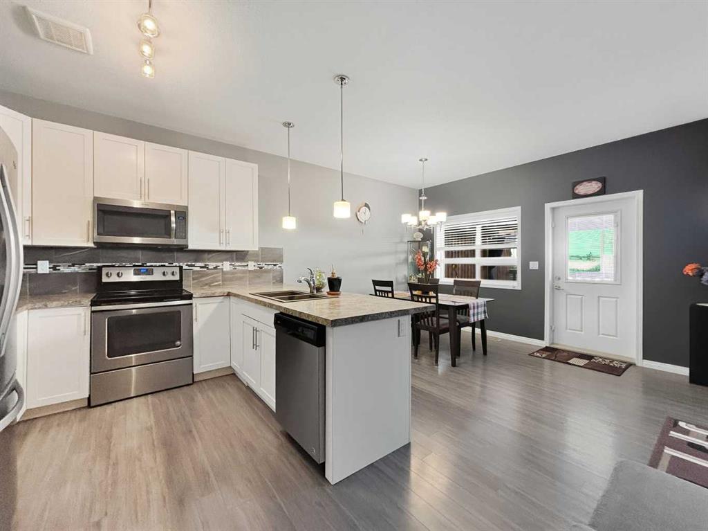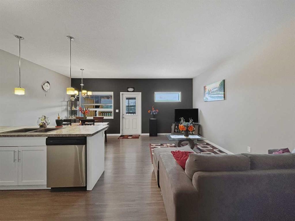 This beautifully maintained 3-bedroom, 2-bathroom townhome sits on a quiet close just steps from the Multi-Plex, schools, and a full range of shopping and services. With an easy 10-minute commute to Red Deer, the location is hard to beat. The main level offers a bright, open layout that seamlessly connects the kitchen, dining area, and living room. From the kitchen, a garden door leads to the east-facing covered deck, perfect for enjoying the morning sun. Below, you\'ll find an additional ground-level deck, a large storage shed, a fenced (white vinyl) backyard, and a double parking pad.