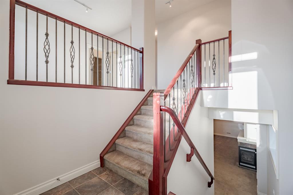 The primary bedroom retreat offers a walk-in closet and a private ensuite bath. The fully finished lower level includes a generous family room with a second fireplace, a large bedroom, a 4-piece bathroom, and direct access to the oversized, insulated double attached garage.