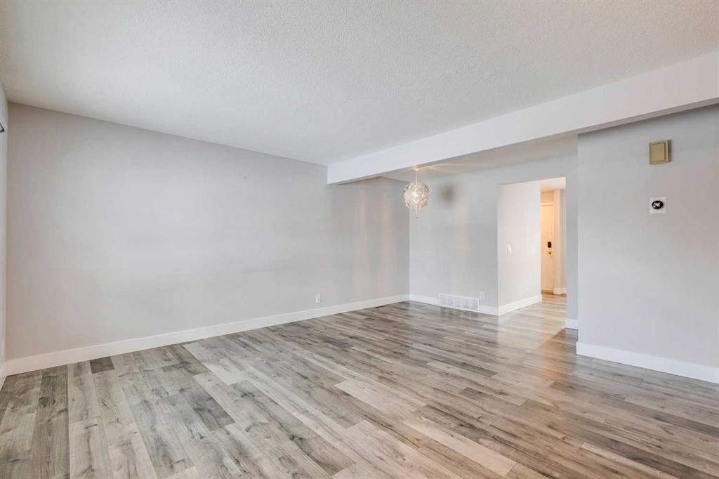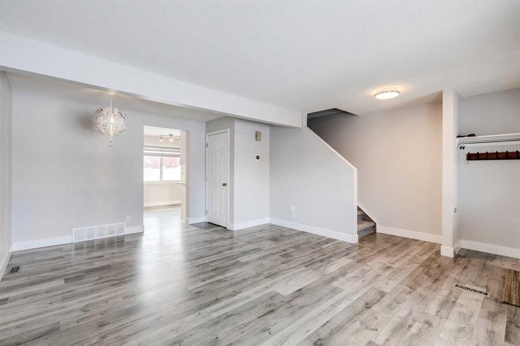 Wonderfully renovated townhome offering a bright and welcoming living space with modern laminate floors, fresh paint, and a beautifully updated kitchen featuring newer white cabinets, quartz counters, and stainless appliances. The upstairs has a renovated bathroom and three large bedrooms, including a huge primary suite with a custom built-in closet. You’ll love the private fenced yard that backs right to a greenspace. The large unfinished basement provides plenty of storage, and the furnace and water heater are approximately six years old. This well-maintained complex has seen major updates over the past decade, including windows, doors, roof, siding, and newer vinyl fencing, and the condo fees include water. There is an assigned parking stall right out from of this home. This townhome is ideally located in Queensland, just a short walk from Fish Creek Park with its endless pathway system and access to the Bow River. Commuting is convenient with quick access to Deerfoot Trail, and families will appreciate having several schools close by. Ready for a quick possession.