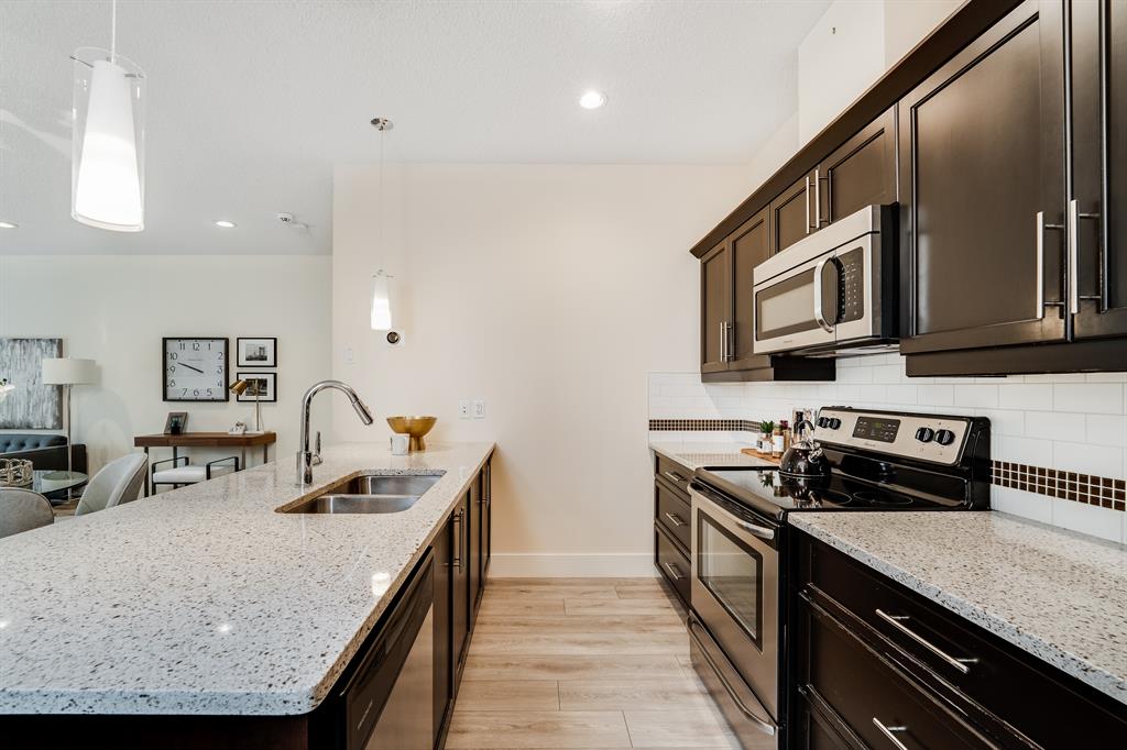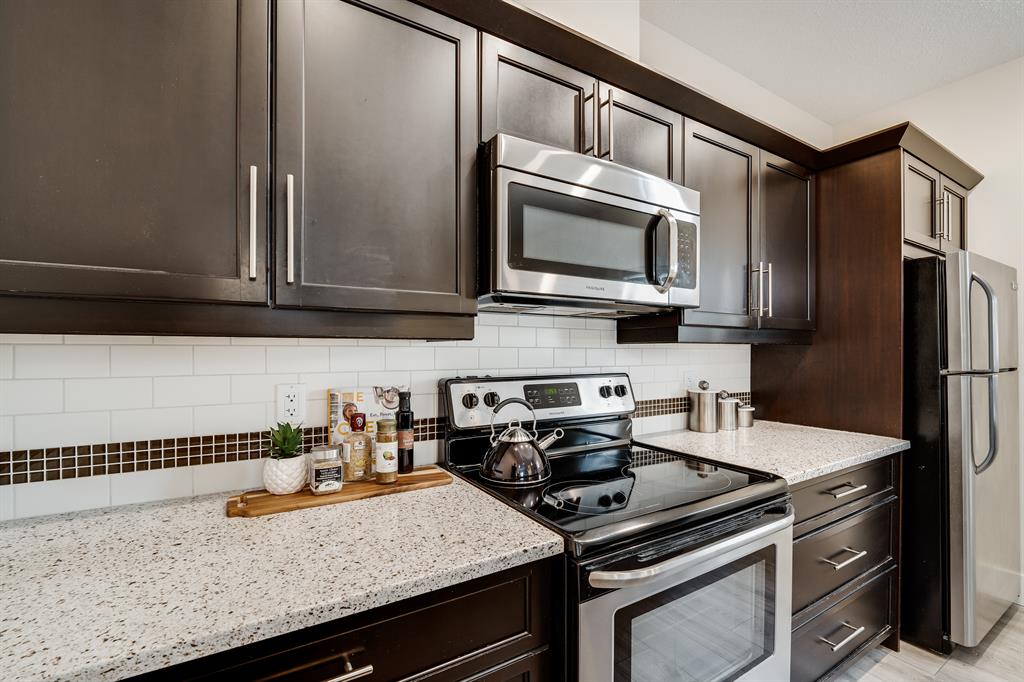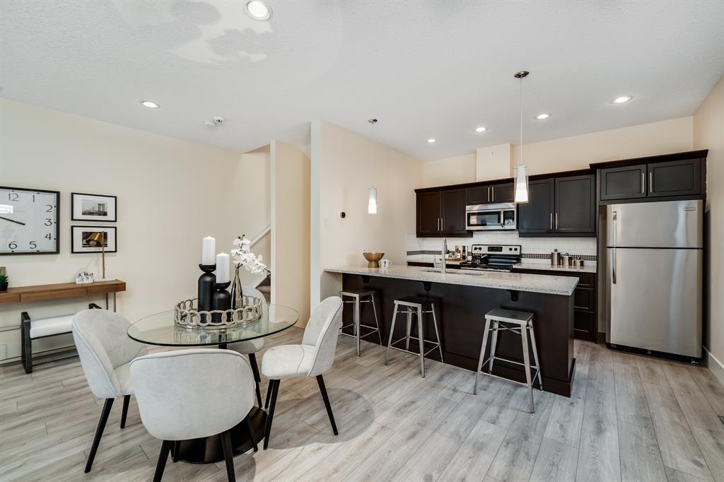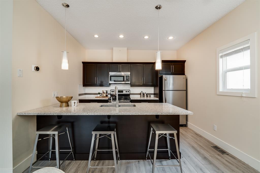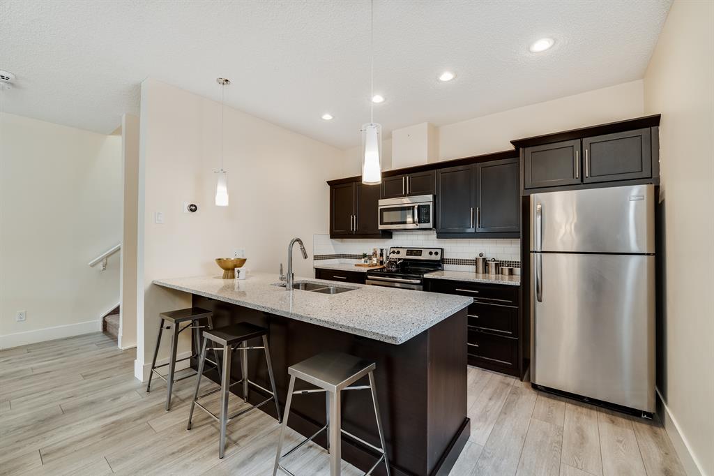 OPEN HOUSE THIS SUNDAY DEC. 14th from 2-4pm! Walking distance from the VERY highly ranked Sunalta Elementary School!! Upscale 3 bedroom, 3.5 bathroom townhome, located a short walk from LRT, in Sunalta. Over 1700 square feet of professionally finished living space, with spacious rooms, stainless steel appliances, granite, countertops, NEW floors, and 9 foot ceilings on the main and lower levels. Upstairs has two master bedrooms with ensuites. Downstairs has an additional bedroom, full bathroom, and a large family room wired for media. The property comes with a titled, 10x22 ft private garage with available parking out front and your own private deck. Pet-friendly, and low condo fees.