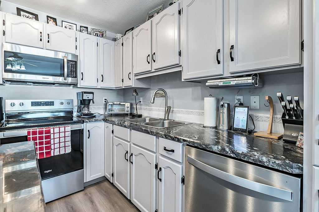 Welcome to 138 Freeman Way! This immaculate, fully finished Polo Park bungalow has been exceptionally maintained is ready for immediate occupancy. A rare end unit with an abundant amount of natural light, this home offers an open floorplan featuring a spacious kitchen with newly stained cabinets, built-in pantry with slide-out drawers, new stainless-steel appliances, granite countertops, and brand new vinyl plank flooring. The dining and living rooms provide comfortable and functional living, featuring new double-pane windows installed throughout the home. Off the great room is access to a maintenance-free concrete pad, a gas line for a bbq or patio heater, with mature trees, and no neighbours behind! The main level includes a large entryway, a generous primary bedroom, a bright den or office, an updated bathroom with new granite and convenient laundry facilities. The lower level adds excellent living space with a family room, highlighted by a fully tiled gas fireplace, guest bedroom, three-piece Jack & Jill bathroom, and a HUGE storage room. An attached, insulated single car garage completes the home. Additional features include brand new blinds, a new roof in 2020 & so much more! Located in a quiet 55+ community close to the Highwood Golf and Country Club, shopping, walking paths and low condo fees at only $260 a month! Don’t miss your chance with this one - call for your private viewing today!