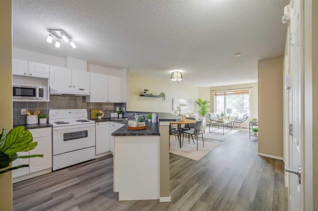 Top floor unit, bright open floor plan, newer vinyl plank flooring throughout, and a private balcony with west and south facing views, this condo is move-in ready! Enjoy a spacious kitchen fully equipped with an eat-up bar, plenty of counter space, and pantry with in-unit laundry for added convenience! The dining and living spaces flow seamlessly together, the large window and patio door allow lots of natural light to pour in. Enjoy your morning coffee or evening cocktail on your spacious balcony! Just off the living room is the generous primary bedroom with double closets and direct access to the main 4 piece bathroom. The second bedroom with room for a queen bed or could be used as an office/den completes the space. This unit comes with 1 parking stall and storage locker. On-site amenities include an exercise room, social lounge, playground and ample visitor parking. Arbour Lake community enjoys year-round lake access with tennis, boating, swimming, skating and more through it\'s homeowner\'s association. This condo is in a fantastic location! Just down the road is Crowfoot Centre with shopping, grocery stores, restaurants, a movie theater and so much more! Other close by facilities include the YMCA, a public library and C-train station with direct access to downtown making commuting a breeze! You don\'t want to miss out on this fantastic condo in a clean, well-managed complex in such a great location! Book your showing today!