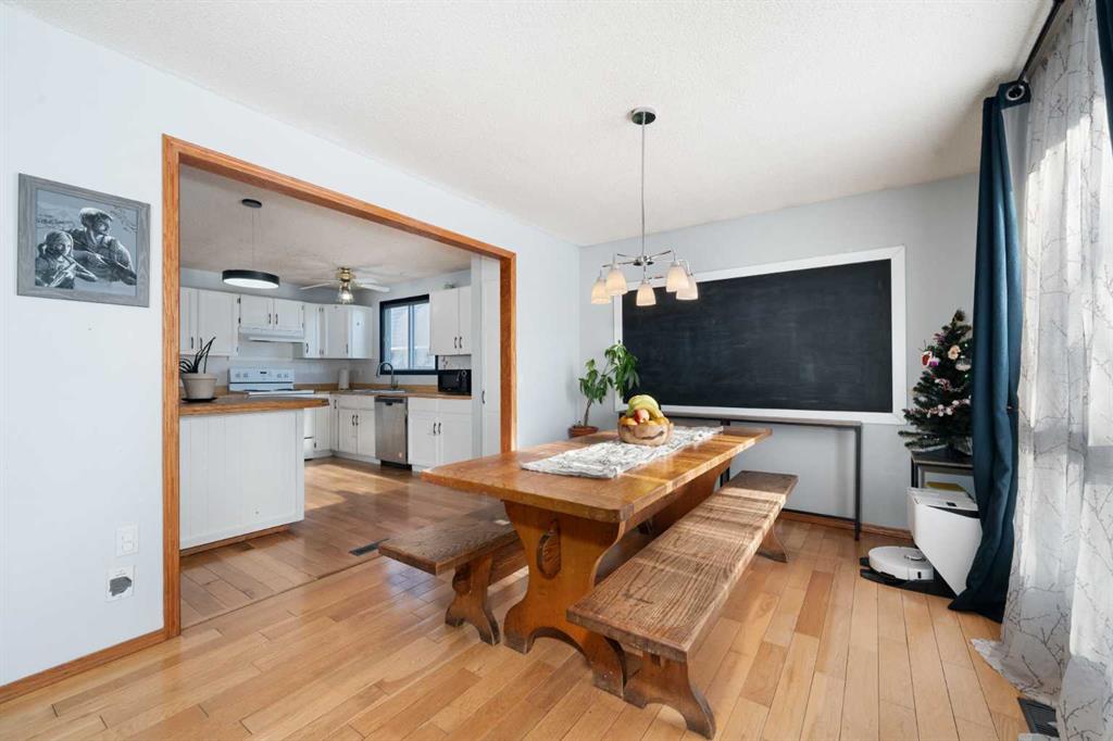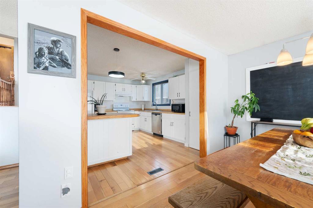 Welcome home to this charming and welcoming updated four-level split, perfectly situated on a quiet street in the desirable community of Maplewood, Strathmore. Offering spacious living, smart design, and fantastic outdoor amenities, this property is truly move-in ready and ideal for a growing family. As you enter, you\'ll be greeted by the bright and open concept main level, featuring a seamless flow between the living and dining areas, perfect for entertaining. The heart of the home is the large, functional kitchen featuring butcher block countertops and an abundance of cabinet and counter space for easy organization and meal prep. The upper floor provides a tranquil retreat with two generously spacious bedrooms and a shared, well-appointed 4-piece main bathroom, ensuring comfort for the whole family. The first lower level is dedicated to relaxation, featuring a sun-filled family room with patio doors offering direct, walk-out access to the beautifully landscaped backyard, blending indoor and outdoor living. This level also includes a bright third bedroom and a convenient 3-piece bathroom, ideal for guests or a home office. The lowest level—the fully finished basement—adds incredible value and versatility. It boasts a fourth distinct living space, a large recreation room perfect for games, and plenty of utility/storage space with dedicated laundry facilities. Recent updates include a brand new roof and shingles that were installed in July 2025 on both the house and the oversized garage. Furthermore, three new rear windows in the bedrooms feature triple-pane glass, significantly enhancing energy efficiency and comfort. The exterior is equally appealing. The property features an oversized single detached garage that is nearly tandem in depth, offering excellent storage potential. The extra-long driveway is a huge asset, providing parking for an additional three vehicles. Location is key, and this home delivers. Situated on a quiet street, you\'re literally around the corner from a neighbourhood park and local schools, plus a fantastic sledding hill for winter fun. For year-round enjoyment, the Strathmore Aquatic Centre is just a couple of minutes away. This Maplewood gem perfectly balances comfortable family living with an ideal location and crucial modern updates. Don\'t miss your chance to call this exceptional property home!
