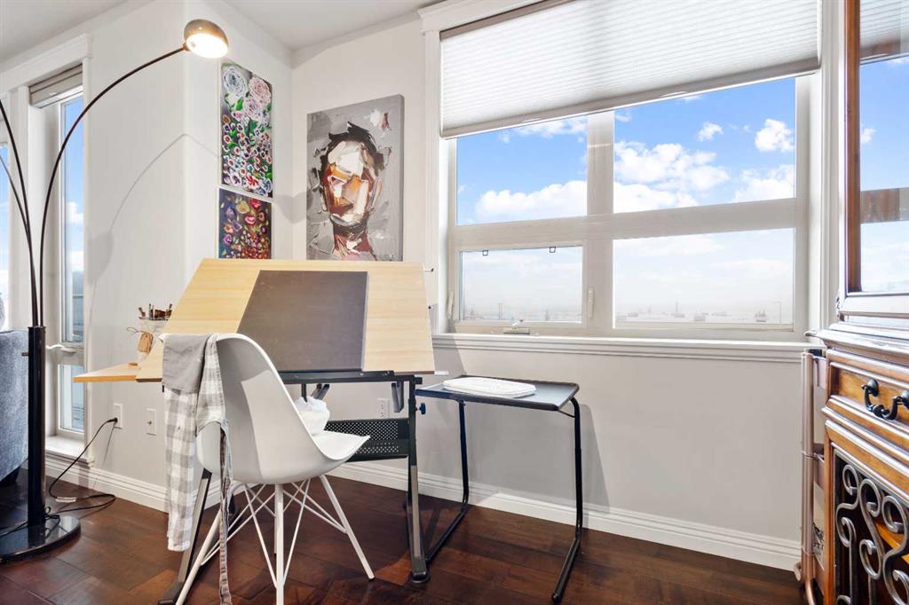 This stunning two-bedroom penthouse suite at Cornerstone is where elevated living and true luxury come together. Filled with natural light from its open layout and expansive windows, the space feels warm, spacious, and immediately impressive. A generous entry welcomes you into a beautifully appointed kitchen with stone countertops that flows seamlessly into the dining area and great room. This is a space designed for both connection and comfort, anchored by a gas fireplace and built-in surround sound, perfect for hosting or unwinding at the end of the day. Step directly from the dining area onto the deck and take in sweeping city views, complete with a gas line for effortless outdoor use. The guest bedroom is impressively sized and features a walk-in closet, offering exceptional storage. The primary suite is a true retreat, complete with its own gas fireplace, a second private balcony, and a spacious ensuite featuring a soaker tub, separate shower, double sinks, and a private water closet, all connected to a large walk-in closet. Cornerstone offers a lifestyle beyond the suite itself, with amenities that elevate everyday living. Residents enjoy access to a fitness room, a beautifully furnished owners’ lounge with an outdoor patio and BBQ, meeting rooms, guest suites, cozy sitting areas, a dedicated mail room, and two elevators. This unit includes all appliances, one titled underground parking stalls, and exclusive access to a resident car wash. This well curated penthouse delivers privacy, comfort, and sophistication an exceptional opportunity for those seeking refined, carefree condominium living at its finest.