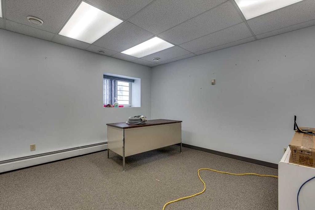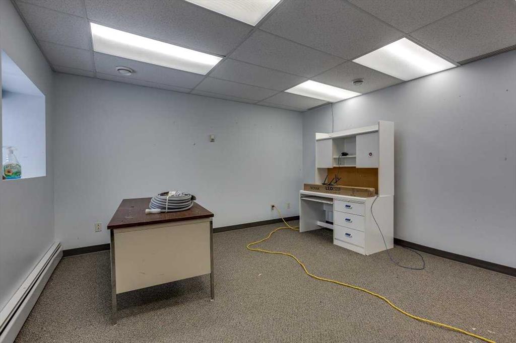 At the front of the building, a spacious office and reception area provides a welcoming customer-facing component. This area can easily be repurposed as administrative offices, a showroom, retail frontage, or a service desk depending on the needs of the new owner. Additional storage areas, a utility room, and multiple support rooms further enhance day-to-day usability.