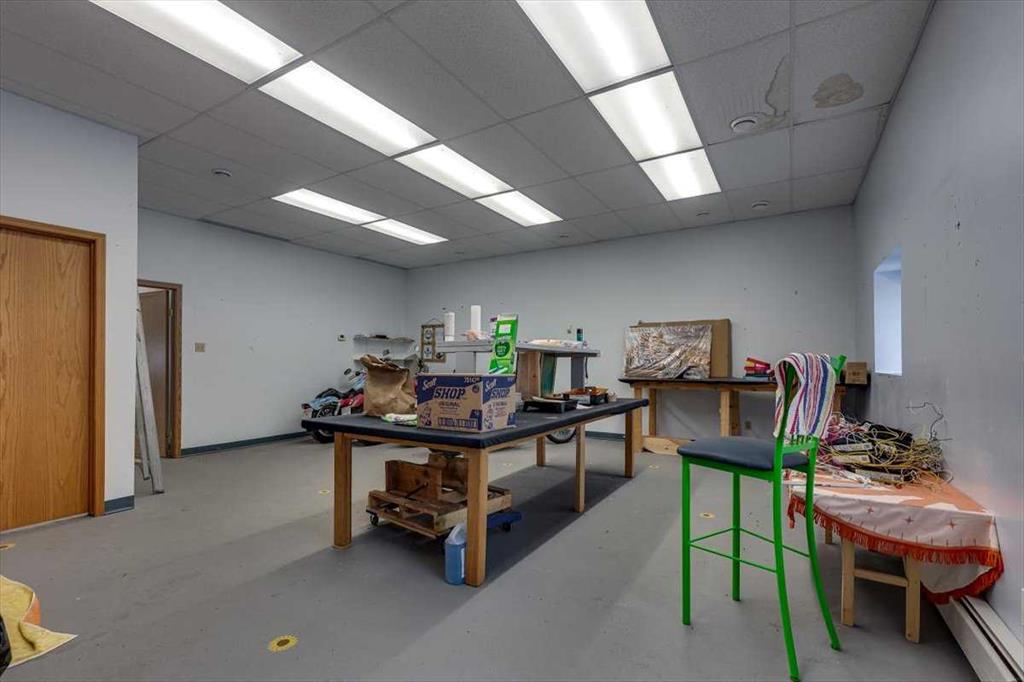 Inside, the layout includes several large multi-purpose workrooms—ideal for fabrication, assembly, storage, creative workspace, or light industrial activity. Bright overhead lighting, durable flooring, and wide access points between rooms make the space practical for a variety of commercial operations.