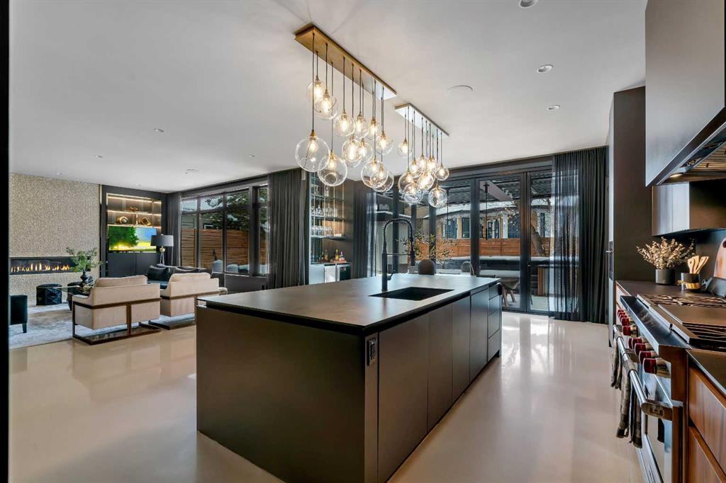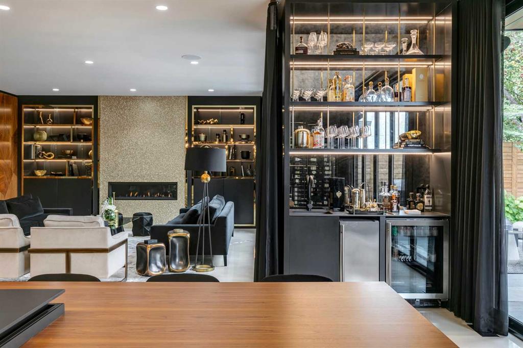 Understated elegance & sophistication describe this gorgeous property located on one of Elbow Park’s most sought after streets. Offering 4+1 bedroom’s, 9 bathrooms and 7,136 SF of livable space this home has been meticulously brought to life by DWK Interiors and was a finalist for Western Living’s ‘Interior Designer of the Year’ Award. You are welcomed in to a large foyer and will immediately feel the bespoke finishing as your view takes in the Pearl White Epoxy floor and smoky finished mirrors. The heart of a home is the kitchen where Black Dekton Stone is freely used for countertops, backsplash and cabinetry that is beautifully contrasted with walnut features. The 60” Wolf Range and SubZero Refrigerator are best in class. The Dekton continues into the Butler Pantry which offers augmented prep space and an oversized 2nd Fridge and Freezer. Take your eyes off of the 16’ Island and oversized rain-drop light fixture and you won’t miss the temperature controlled wine cellar (220 Bottles) that leads right into the rear wall which is a full Nano Accordion Door that fully opens to the outdoor space. A custom wall bar compliments all these spaces as you move into the living room which makes a statement with the Walnut feature wall! From the living room you can easily walk past a chic powder room and find yourself immersed in the event space set up with entertainment in mind. This room exudes class with White Oak herringbone patterned hardwood grounded by a black & gold diamond design built-in. The ceiling is covered in black leather-like wall paper and all leads to a formal dining area lit up by a 10’ gold custom chain link layered fixture. Venture upstairs to 3 secondary bedrooms that are all Suite-Like with exclusive ensuites and customized perfectly for the whole family. The Primary Suite offers 2 separate walk-in closets and an ensuite which features more Dekton counters with accents of gold and white & full slab tiled walls. LOVE the floating bath and the steam shower showcasing Italian wood textured tile. Upstairs laundry room with double washer and dryers completes this floor. The 3rd story loft is perfect as a bonus room, office or craft room with private bathroom and roof-top patio. It offers a fridge, sink and mini dishwasher with custom millwork and built-ins. The walk-up lower level functions perfectly as a family retreat and games space with a full service bar area. A Large fitness room also showcases a custom one-of-kind wall mural by internationally known artist Michelle Hoogsveld. The 5th bedroom and private ensuite is set up for a live-in nanny or house guests. Huge mud-room with lockers and cabinetry allow for hiding all your gear. Oversized triple/tandem garage has slat walks to assist with storage, dog or bike wash and heated epoxy floors. The rear yard offers multiple multiple options for play-time or relaxation with an oversized pool with swim up bar and fully appointed outdoor kitchen including pizza oven! Call for private showing today!