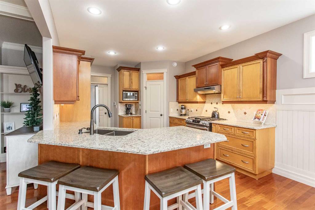 Don’t miss your chance to explore this exquisite walk-out bungalow nestled in a sought-after neighborhood of Innisfail, right next to scenic walking trails and just steps from the park! The main floor welcomes you with a grand entrance that flows into a sophisticated living room, featuring a custom trayed ceiling, built-in shelving, and a inviting gas fireplace. The chef\'s kitchen is a dream come true, equipped with abundant cabinetry, granite countertops, upgraded stainless-steel appliances—including a brand new gas stove—and a convenient corner pantry.