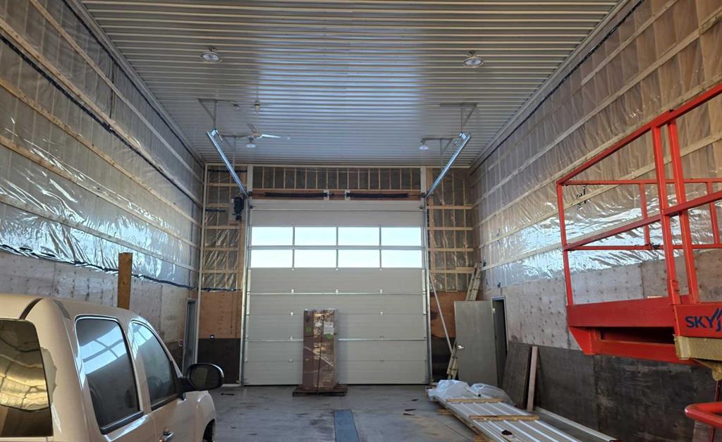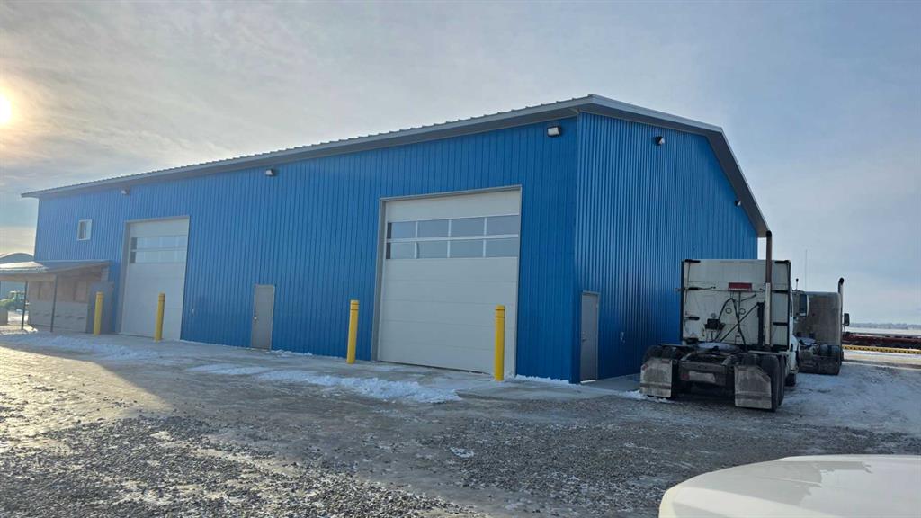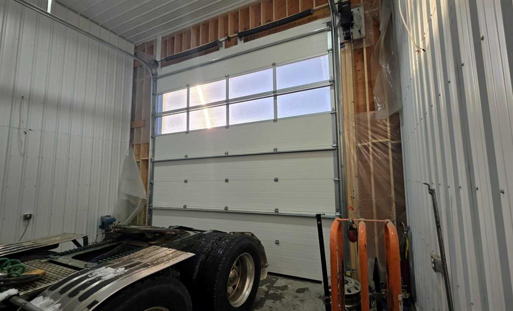 The building layout includes an eighty-by-twenty-five foot drive-through wash bay, an eighty-by-twenty-five foot contained welding bay, and an eighty-by-fifty foot main shop area planned to incorporate office space, lunchroom, washrooms, and generous shop space. Major components of the structure are already in place, allowing a purchaser to complete the remaining work to suit operational requirements.