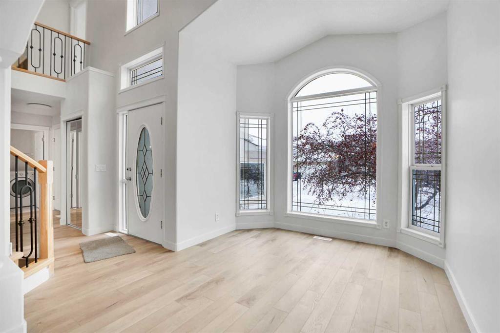 Inside, the house greets you with that WOW moment — soaring 17’ ceilings, the sweeping curved staircase, and oversized windows pouring natural light across brand-new flooring. It’s a true “wow” entrance that sets the tone for the rest of the home. The main floor features a spacious formal living/dining area, a bright kitchen with centre island and pantry, a cozy family room with 3-sided fireplace, and a private main-floor office with French doors. Ceiling to floor Windows in the Family Room provide ample light during the day and gives you an unobstructed view of the backyard. Step outside onto your own private deck for summer BBQs or just relaxation after a long work-week. This house has it all. Upstairs offers 3 bedrooms including a generous primary suite with 5-pc ensuite and walk-in closet. The open-to-below hallway adds light and airiness throughout. The second and third bedrooms are towards the front of the house, with spacious closets, new carpets and light fixtures. The 4 pc bathroom down the hallway is also a master piece and Brand NEW with it\'s cabinetry, lighting, faucets, counter tops and shower area. The unspoiled basement is ready for your future development with 3 windows and lots of potential.