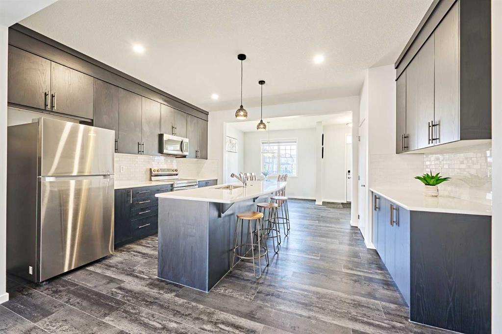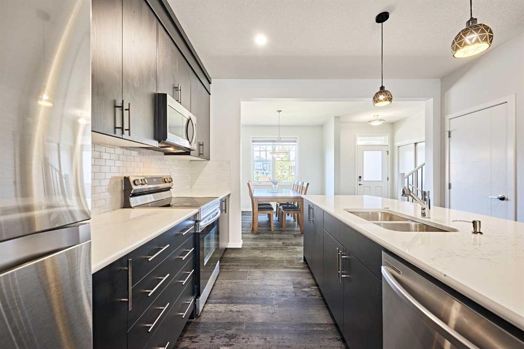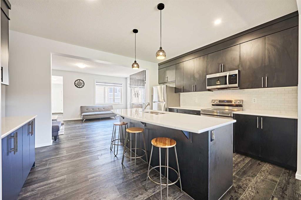 Step through the porch into a spacious front entry, complete with a large closet — perfect for coats and shoes. From there, you\'re welcomed into a bright open-concept main floor that seamlessly connects the living room, dining area, and a stunning kitchen featuring a huge quartz island, ceiling-height cabinets, and a custom backsplash. The living room showcases a sleek dark-themed feature TV wall with an electric fireplace, adding a modern and elegant touch.
