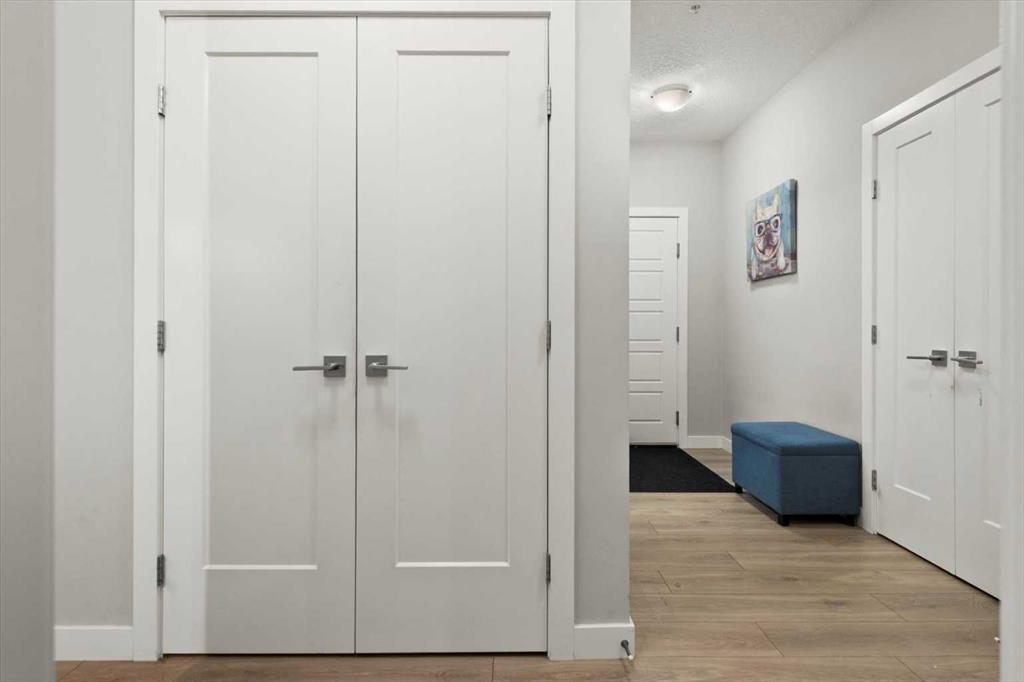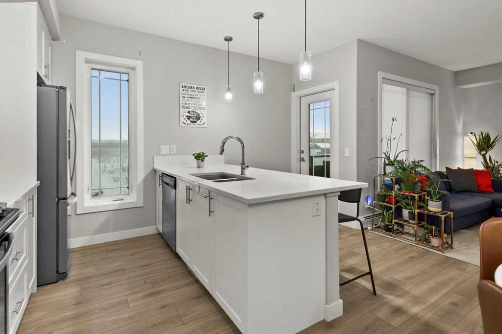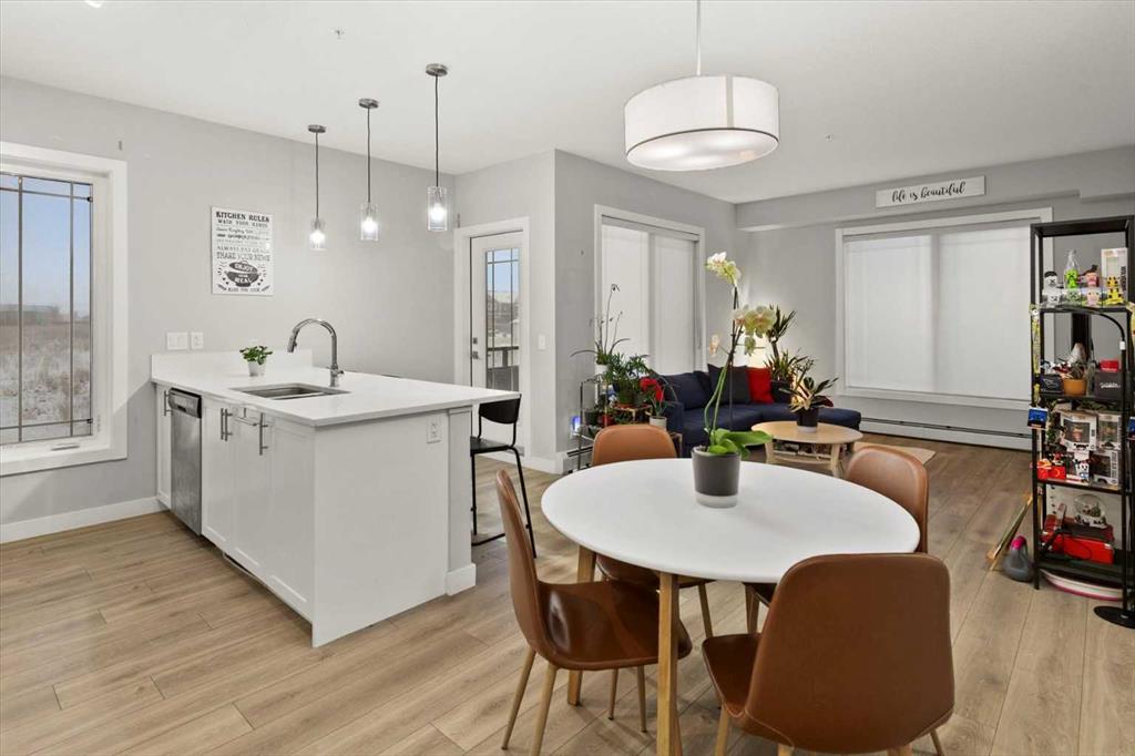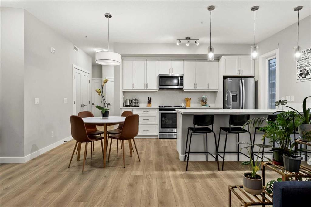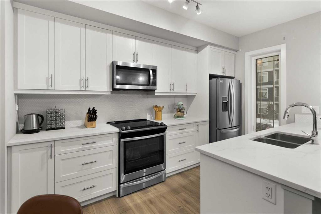 CORNER UNIT | 2 BEDROOMS | 2 FULL BATHS | WRAP-AROUND BALCONY | FULLY UPGRADED | UNDERGROUND HEATED PARKING & STORAGE LOCKER! Welcome to this fantastic and spacious 947 sq ft Corner Unit in the highly desirable, lake-access community of Auburn Bay! Featuring one of the largest floor plans in the complex, this bright and modern home offers 2 bedrooms, 2 full bathrooms, and a stunning wrap-around balcony. Step inside to 9 ft ceilings and an open-concept layout filled with natural light thanks to the many large windows complete with custom blinds. The fully upgraded kitchen features white soft-close cabinetry, quartz countertops, stainless steel appliances, and a functional layout ideal for cooking and entertaining. The spacious living room flows seamlessly into the dining area, providing the perfect setting for gatherings with family and friends.The well-designed split-bedroom layout places the bedrooms on opposite sides of the home for maximum privacy. The primary suite offers his & hers closets and a stylish 3-piece ensuite with quartz counters. The second bedroom is generously sized and conveniently located next to the 4-piece main bathroom. In-suite laundry adds everyday convenience. Enjoy your morning coffee or host summer BBQs on the sunny wrap-around balcony, one of the standout features of this home! This unit includes a heated underground parking stall and a secure storage locker. The pet-friendly complex also offers a convenient dog wash station on site. Located in the heart of Auburn Bay, you’ll enjoy lake access, nearby parks, schools, pathways, shopping, restaurants, transit, the YMCA, VIP Cineplex theatres, and the South Health Campus, all just minutes away. Quick access to Stoney and Deerfoot Trails ensures effortless commuting across the city. This exceptional corner unit offers style, comfort, and an unbeatable location. The perfect place to call home!