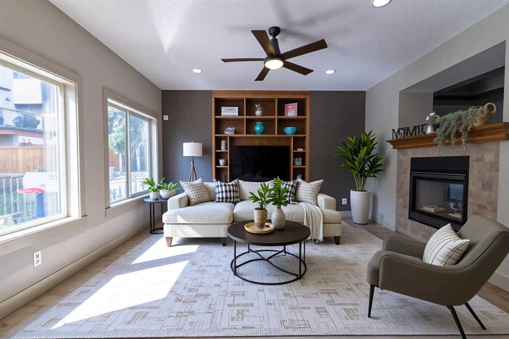 Step inside to a breathtaking 18-ft open-to-above foyer, where 9-ft ceilings and European brushed oak hardwood set the tone for luxury. The formal living and dining rooms are enhanced with a coffered ceiling and a double-sided fireplace. The spacious family room, with a coffered ceiling, offers both elegance and versatility — ideal for relaxing evenings, formal entertaining, or a secondary gathering space for the family and friends. The chef’s kitchen features granite countertops, an island with breakfast bar, custom maple cabinetry, and premium stainless steel appliances including a Bosch silent dishwasher and Kitchen Aid gas range — all designed for both function and sophistication. The kitchen flows into a sun-filled great room with custom built-ins, and a glass door leads to a southwest-facing deck overlooking a beautifully landscaped, mature yard. The main floor also includes a private office/den (or 6th bedroom), a full bath, and a spacious laundry/mudroom.