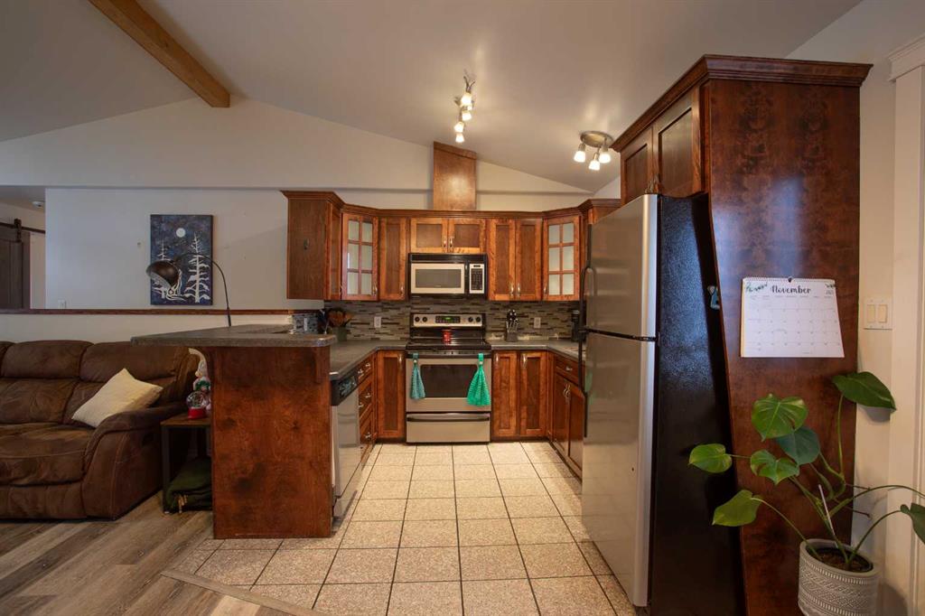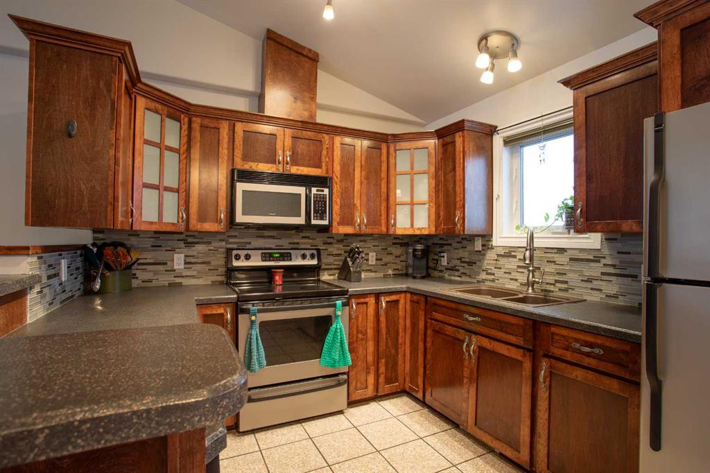 Welcome to this beautifully crafted 2,500 sq. ft. living space custom home, oozing with exceptional comfort, style, and space in one of High Level’s most desirable areas. With high vaulted ceilings, abundant natural light, and thoughtful design throughout, this home is perfect for families seeking a blend of elegance and everyday functionality. Step into the inviting Sitting Room, complete with a handsome gas brick fireplace creating the ideal cozy gathering space for those long northern winter evenings. The Kitchen and dining areas flow seamlessly for both entertaining and day-to-day living. Off the Kitchen you will find the attached heated double garage for all your toys plus plenty of room to keep your car out of the elements. This home features 3 bedrooms down the hall, including a private Primary Suite complete with a luxurious ensuite boasting a jacuzzi tub, double sinks and a separate shower — your own personal retreat. Completing the home in the lower level you will find another well sized bedroom perfect for the teenager or overnight guest, full bath, Laundry Room and a very spacious Family Room where hours of bonding, entertaining and game nigh are certain. There is another well addressed separate work-out space or perhaps an area to unleash your creative side. Outside, enjoy the large yard designed for both relaxation and recreation. Whether hosting friends for a late night fiesta on the fantastic deck or unwinding under the stars, the fire pit adds the perfect finishing touch to this beautiful outdoor space. With its custom design complete with central air, quality finishes, and prime location, this High Level gem offers a rare opportunity to own a truly special property. Don’t miss your chance to make it yours.