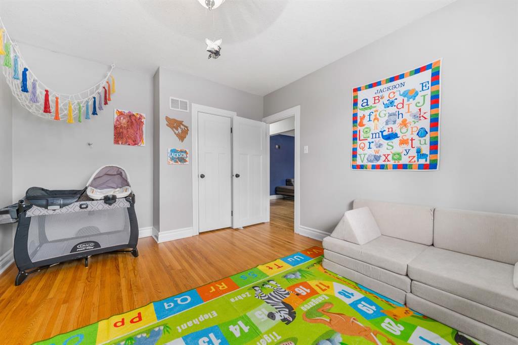 Location, location! Welcome to this spacious 5 bedroom bungalow situated on a quiet street just steps from Central Park. Enjoy a half block walk to the waterpark and playground, with schools and shopping conveniently nearby, an ideal setting for families. This well kept 1950s home offers a functional and flexible layout with three bedrooms up and two down, perfect for growing families. A standout feature is the huge primary bedroom located over the converted single garage, providing a private retreat with plenty of space. Inside, you’ll appreciate the refinished hardwood flooring, and updated windows throughout. The home has seen important updates including shingles replaced in 2010 and an upgraded 100-amp electrical panel. The efficient eat-in kitchen features some updated cabinetry, a gas stove, and is also wired for an electric stove. The fully finished downstairs offers additional living space and bedrooms, giving everyone room to spread out. Outside, the fully fenced and landscaped yard includes underground sprinklers, plenty of off street parking, and space to build a future double garage. The original attached garage has had the overhead door closed in, but could easily be opened back up and turned back into a garage. There is a gas outlet in the former garage so It would also be straight forward to heat it. A solid home in a highly sought after location...close to parks, schools, and amenities...this property checks all the boxes for comfortable family living.